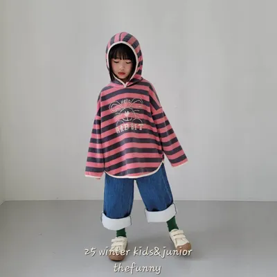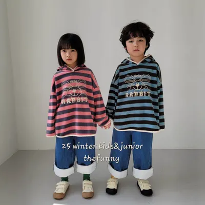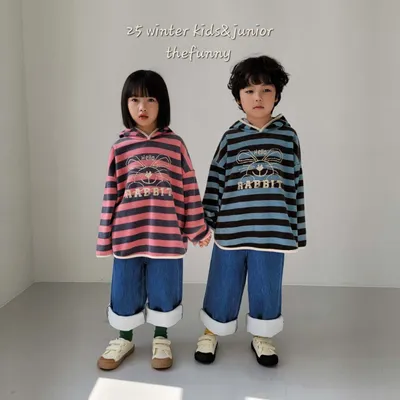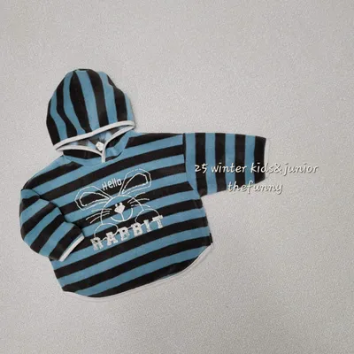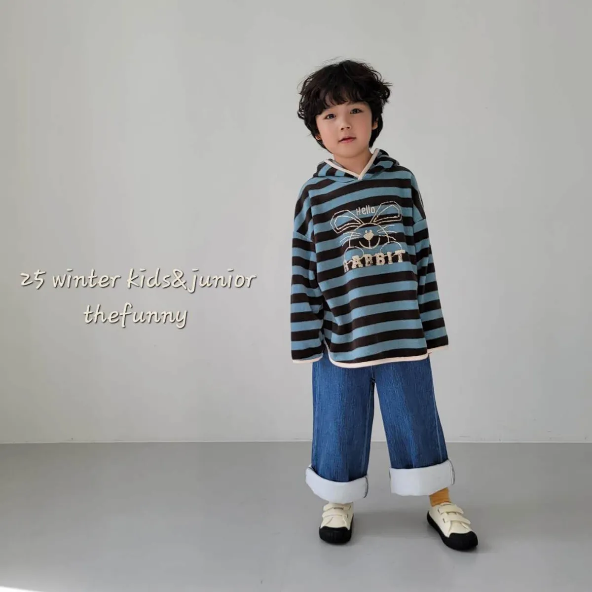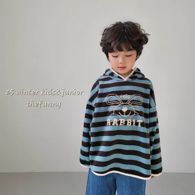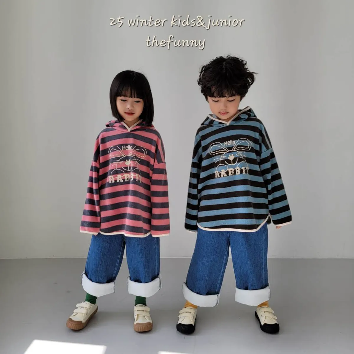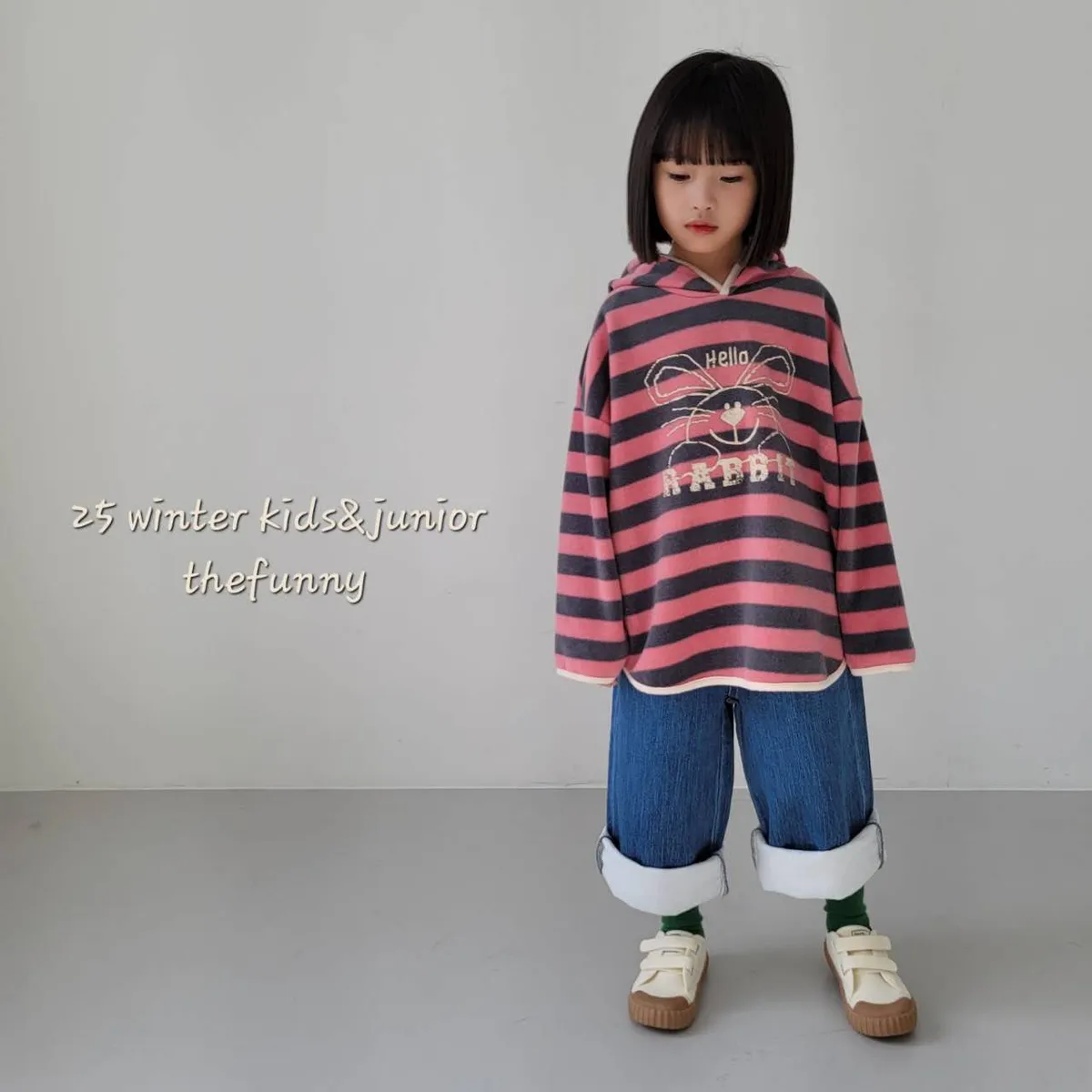正韓橫條兔子刷毛帽T(85-140cm預購)