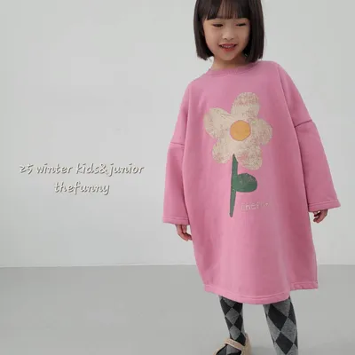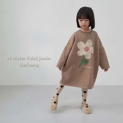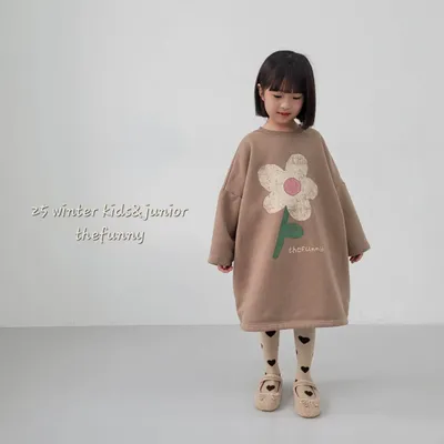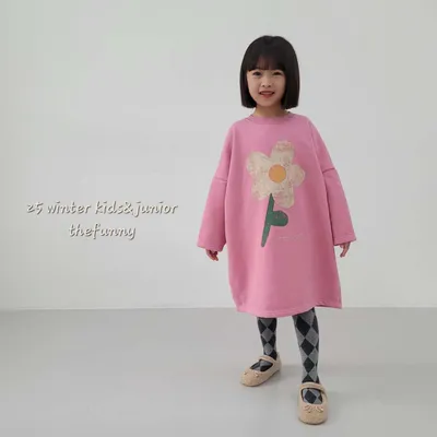 正韓塗鴉大花刷毛洋裝(85-140cm預購)