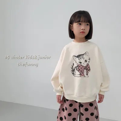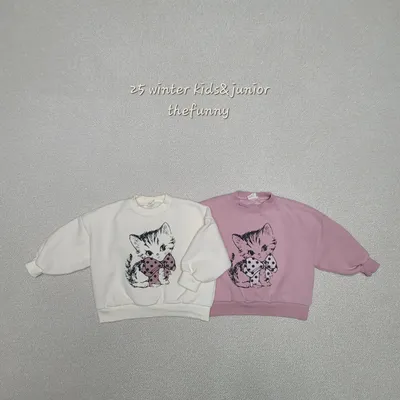 正韓可愛小貓微領刷毛T(85-140cm預購)