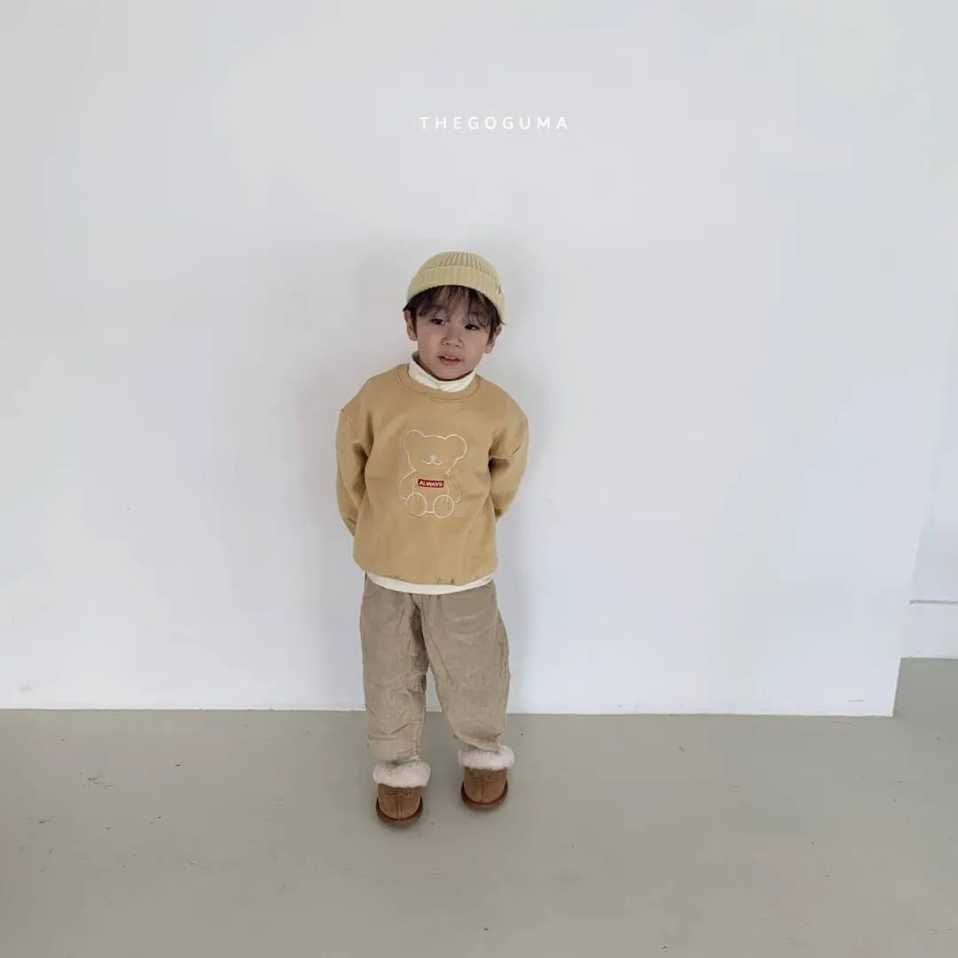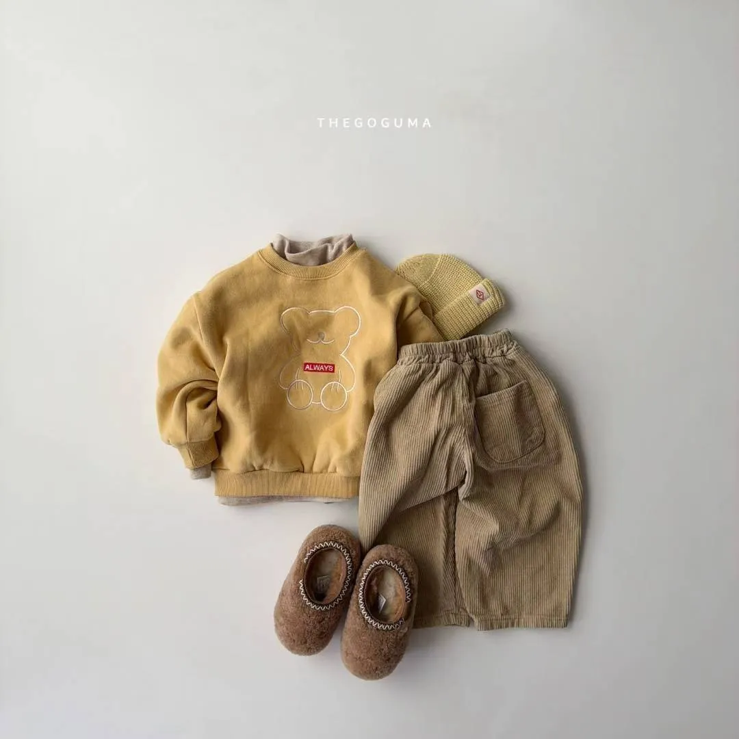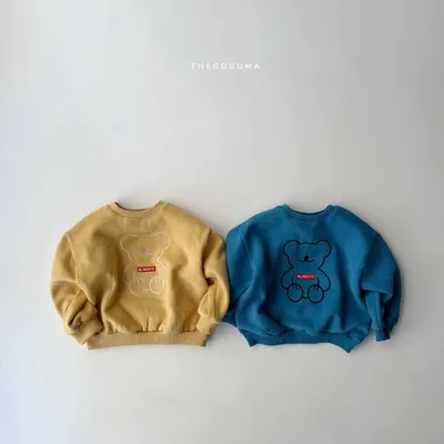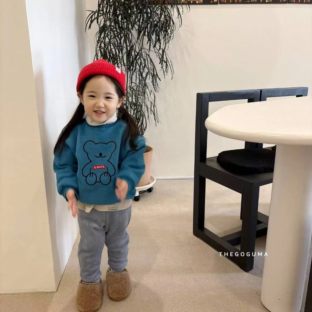 正韓壓紋熊熊刷毛大學T(90-150cm現貨+預購)