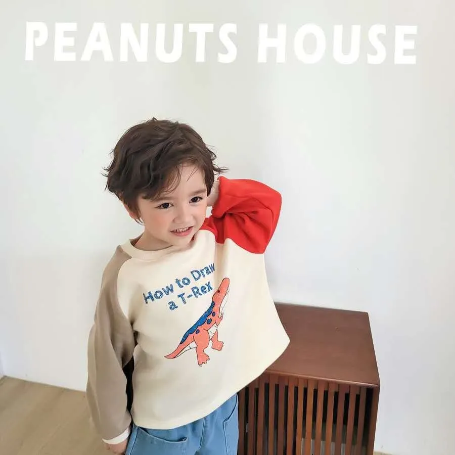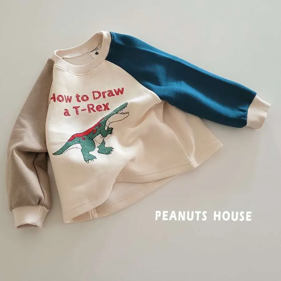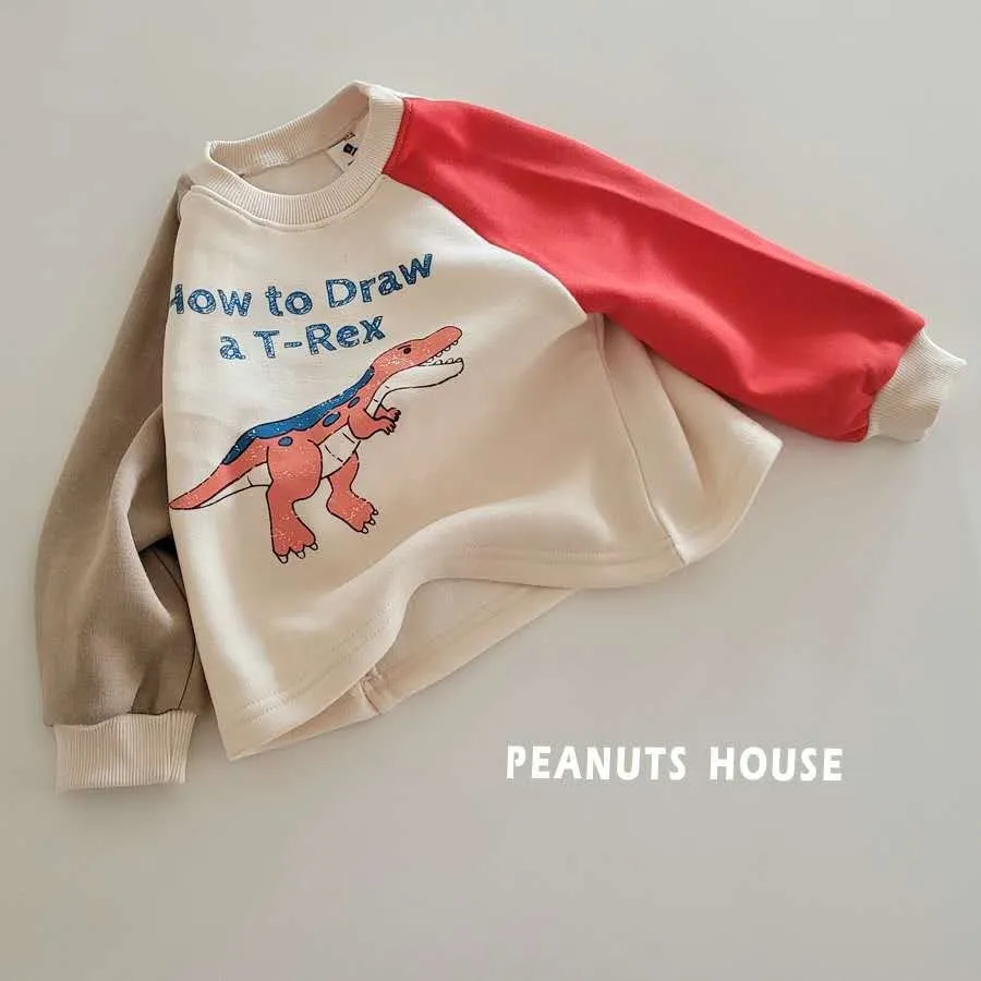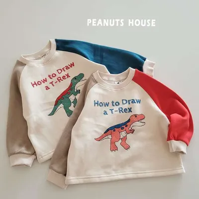 正韓撞色手繪恐龍刷毛上衣(95-145cm預購)