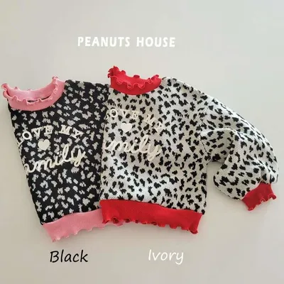正韓撞色豹紋針織上衣(95-145cm預購)