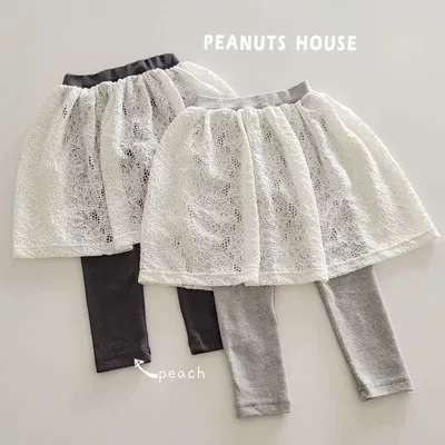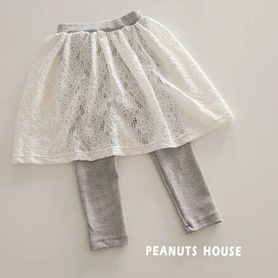 正韓假兩件蕾絲雕花褲裙(95-145cm預購)