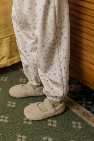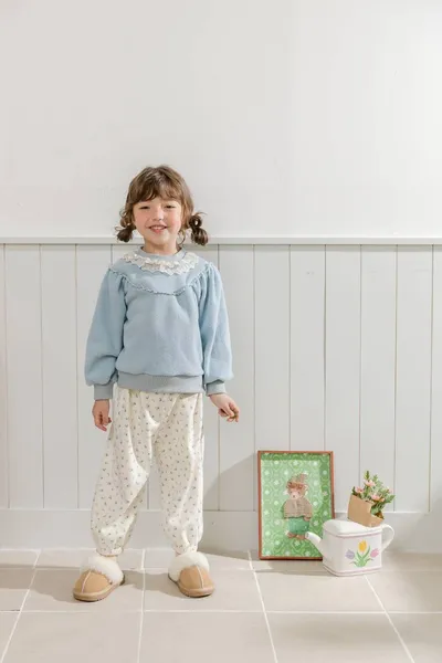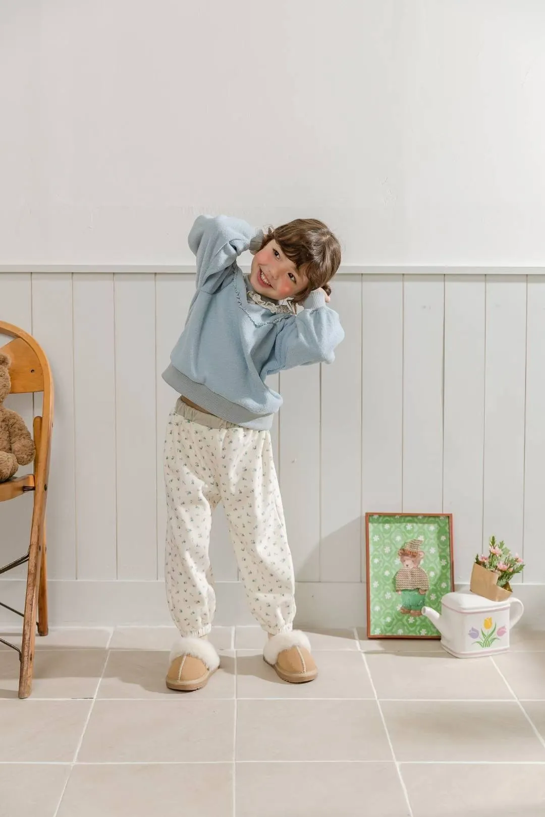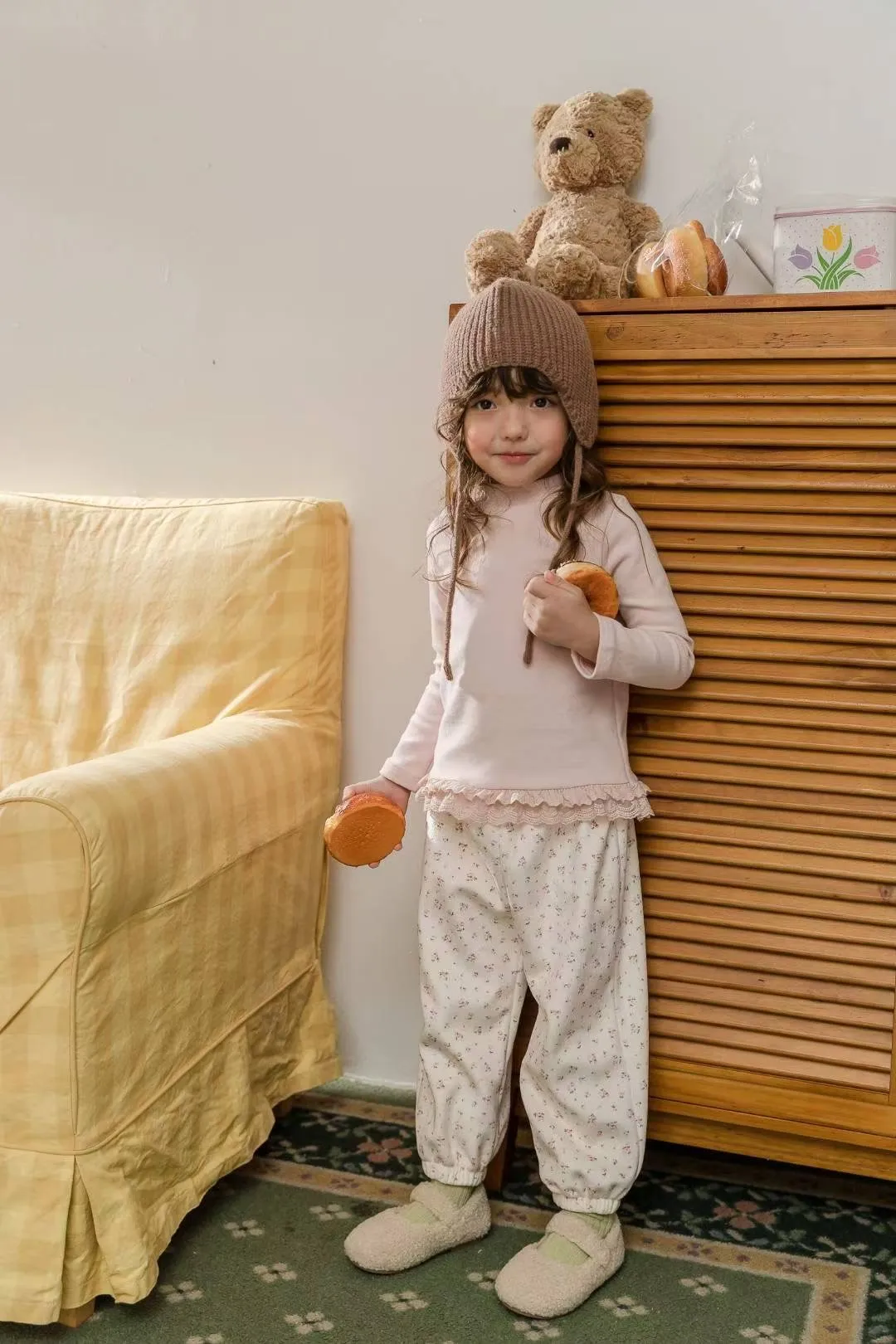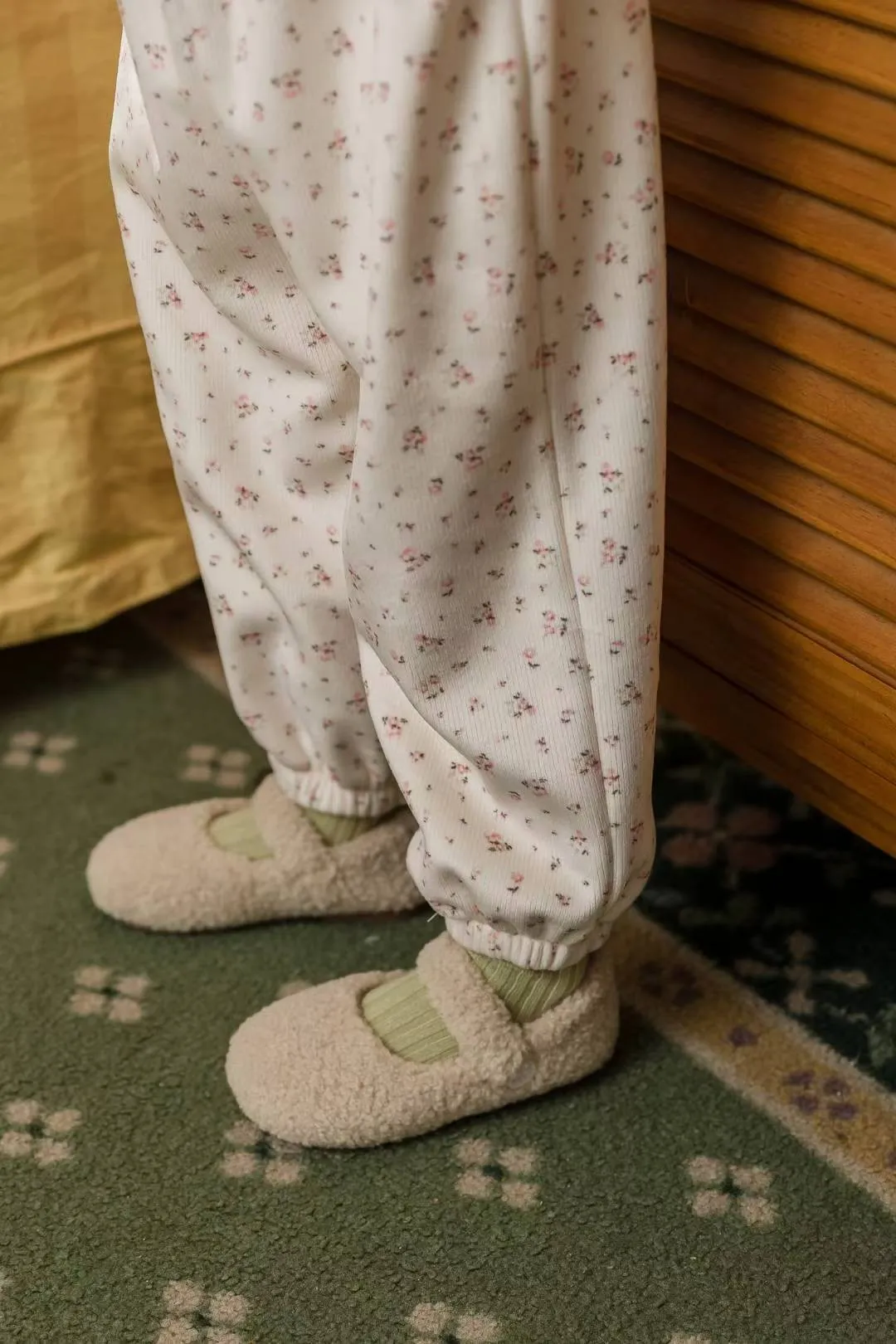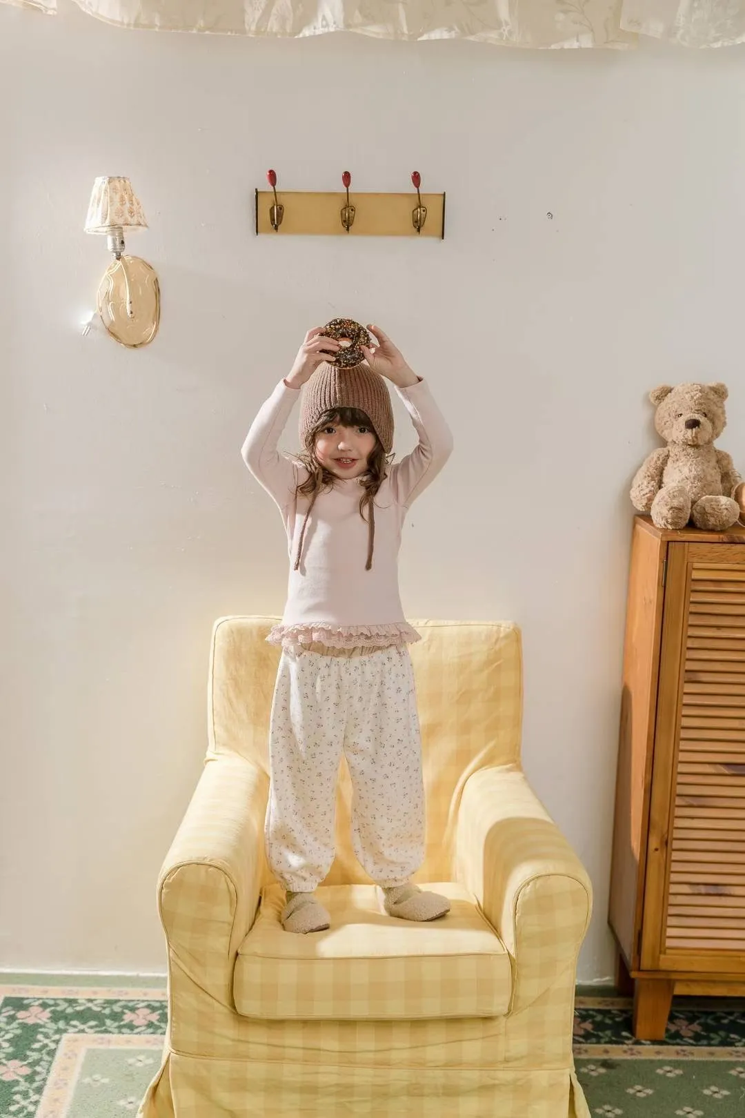 正韓碎花刷毛縮口棉褲(90-140cm預購)
