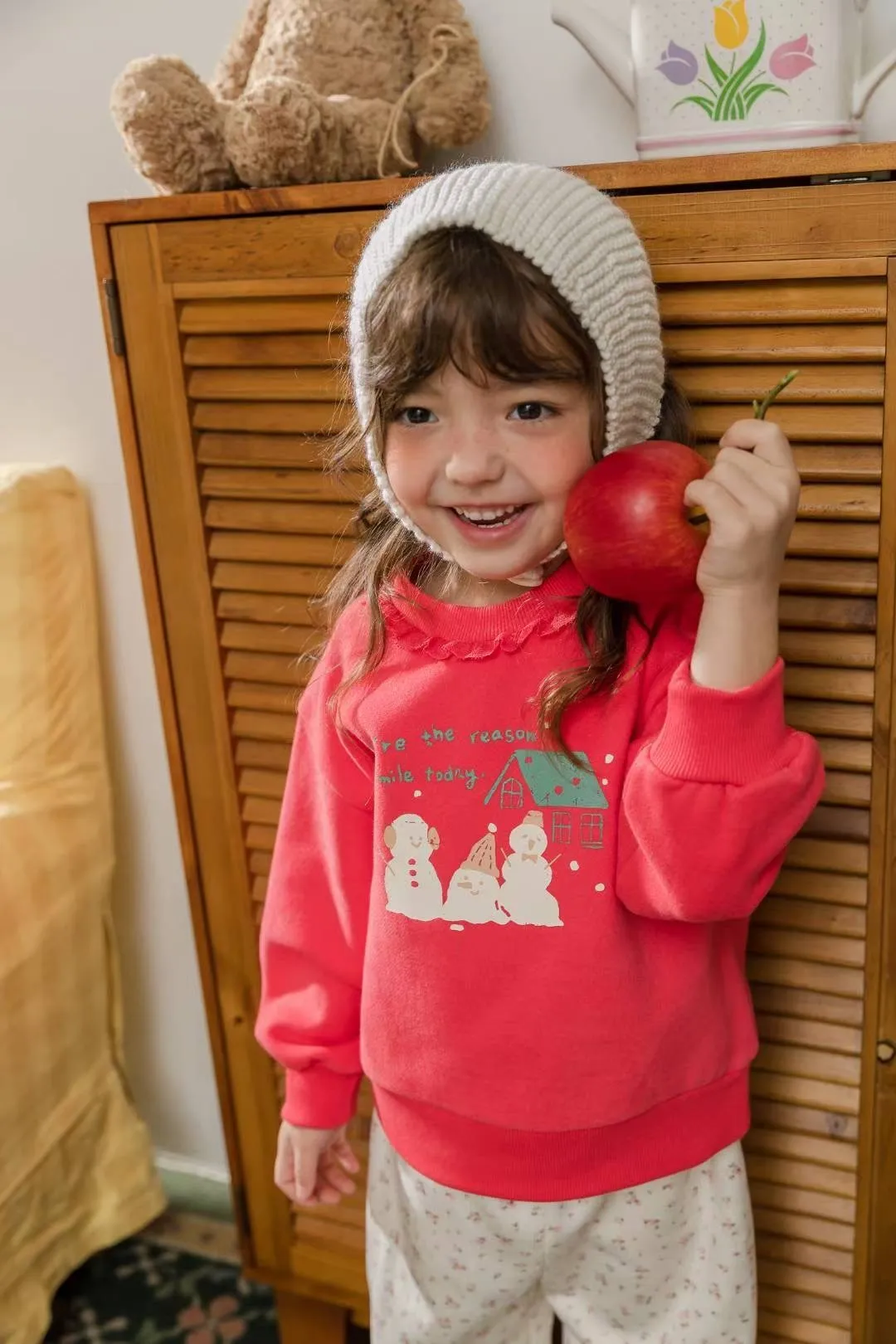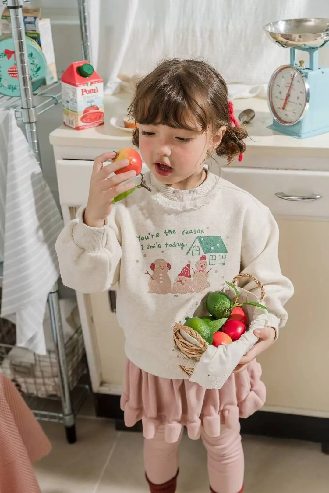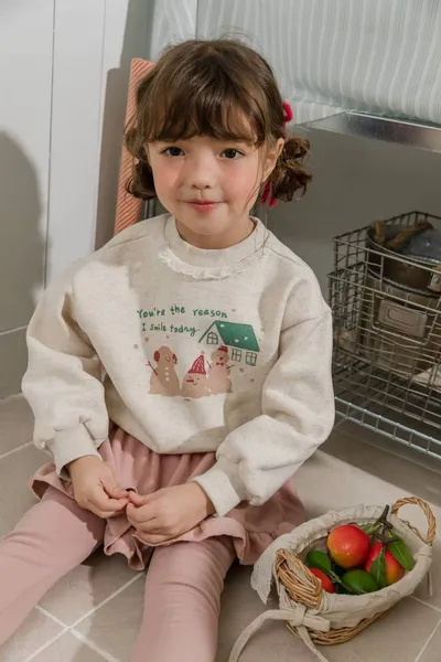 正韓雪人蕾絲領刷毛T(90-140cm預購)