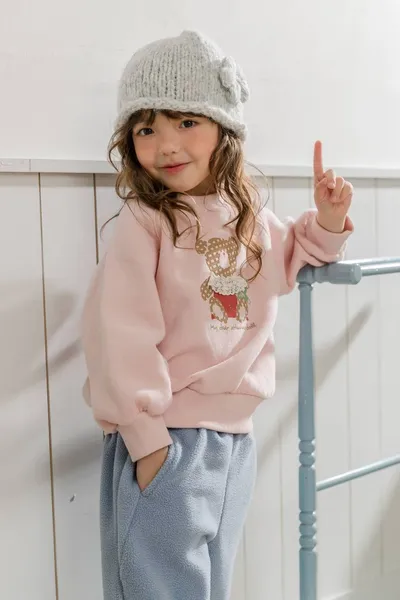 正韓蕾絲熊熊刷毛T(90-140cm預購)