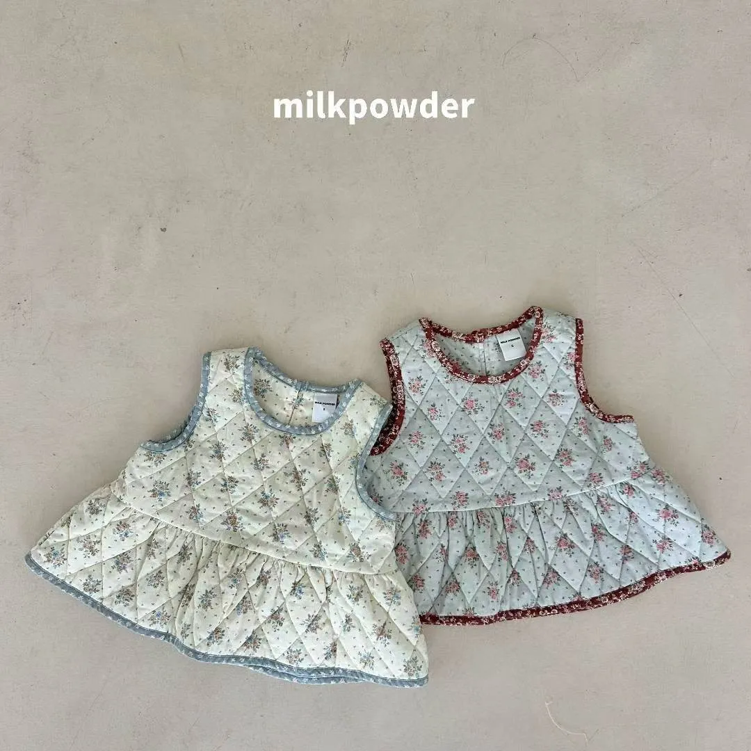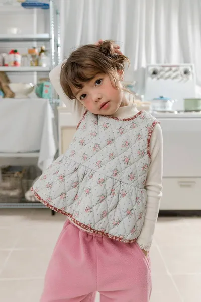 正韓撞色邊碎花鋪棉背心(90-140cm預購)
