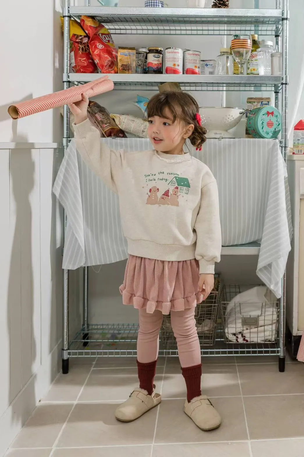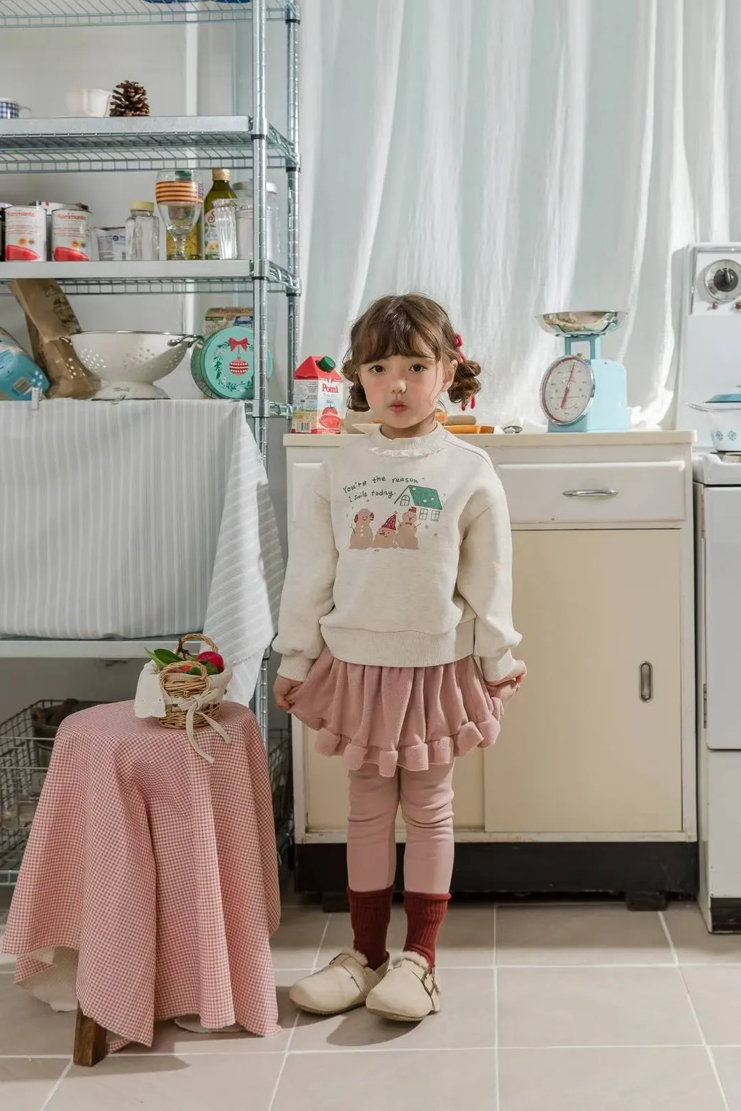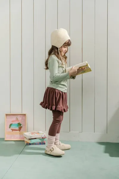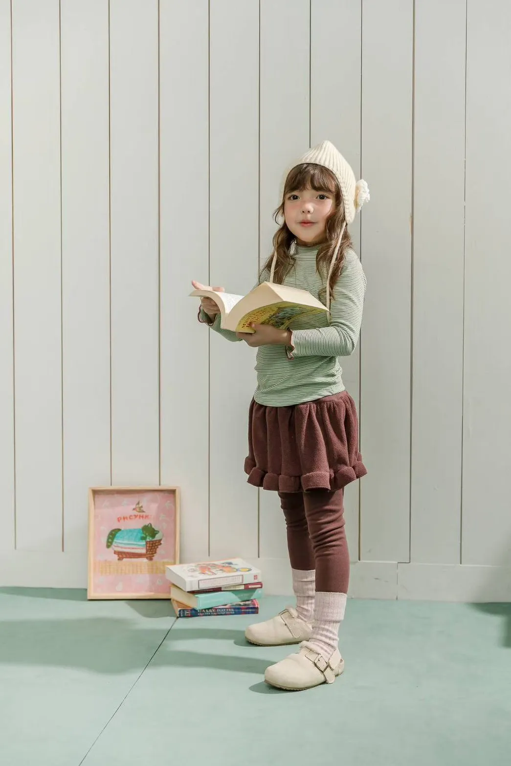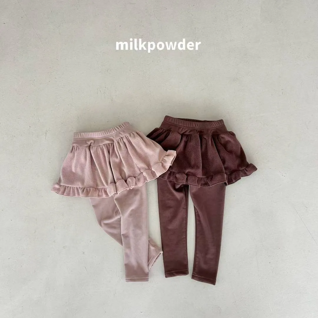 正韓素色層次荷葉刷毛褲裙(90-140cm預購)