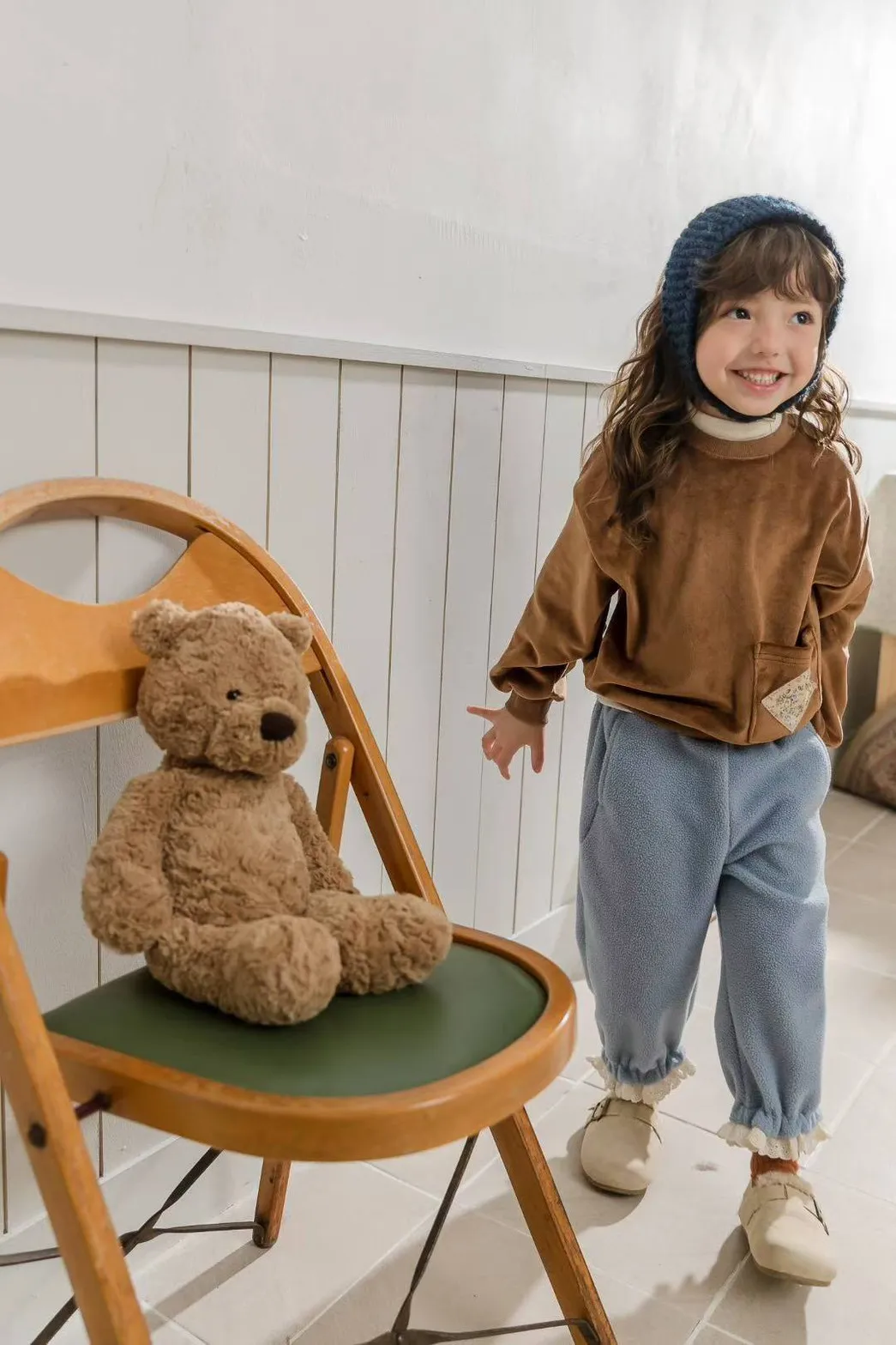 正韓蕾絲縮口刷毛褲(90-140cm預購)