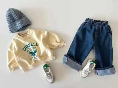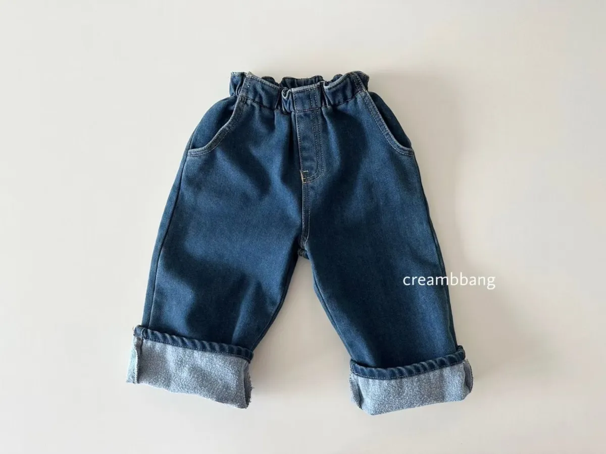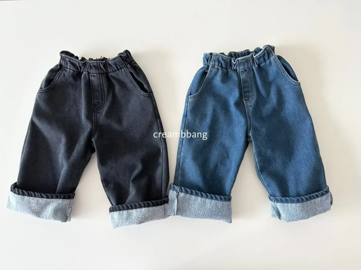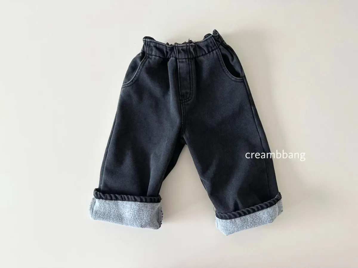 正韓花苞鬆緊直筒刷毛牛仔褲(85-155cm預購)