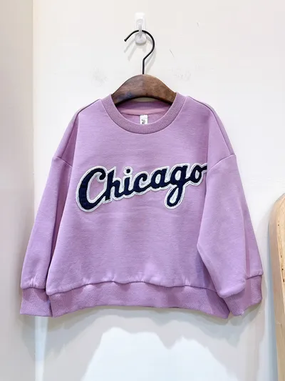 香水娜娜~英⽂印花貼布繡衛衣(90-160cm現貨)