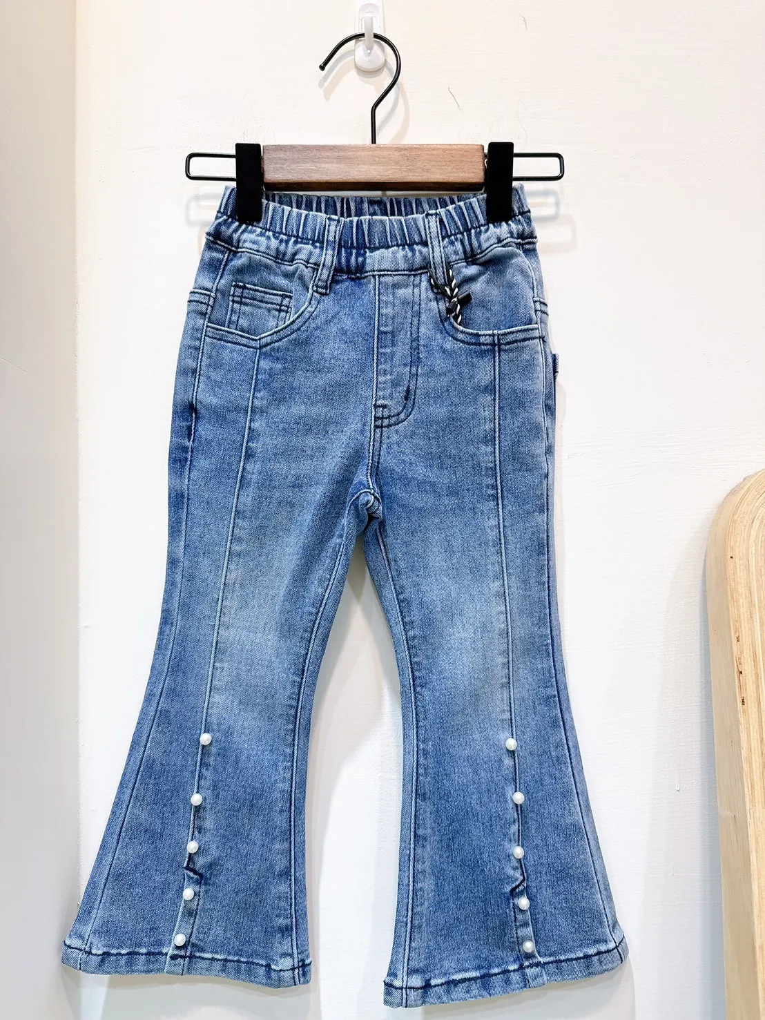香水娜娜~中線⼀排珍珠⽜仔褲(90-140cm現貨)
