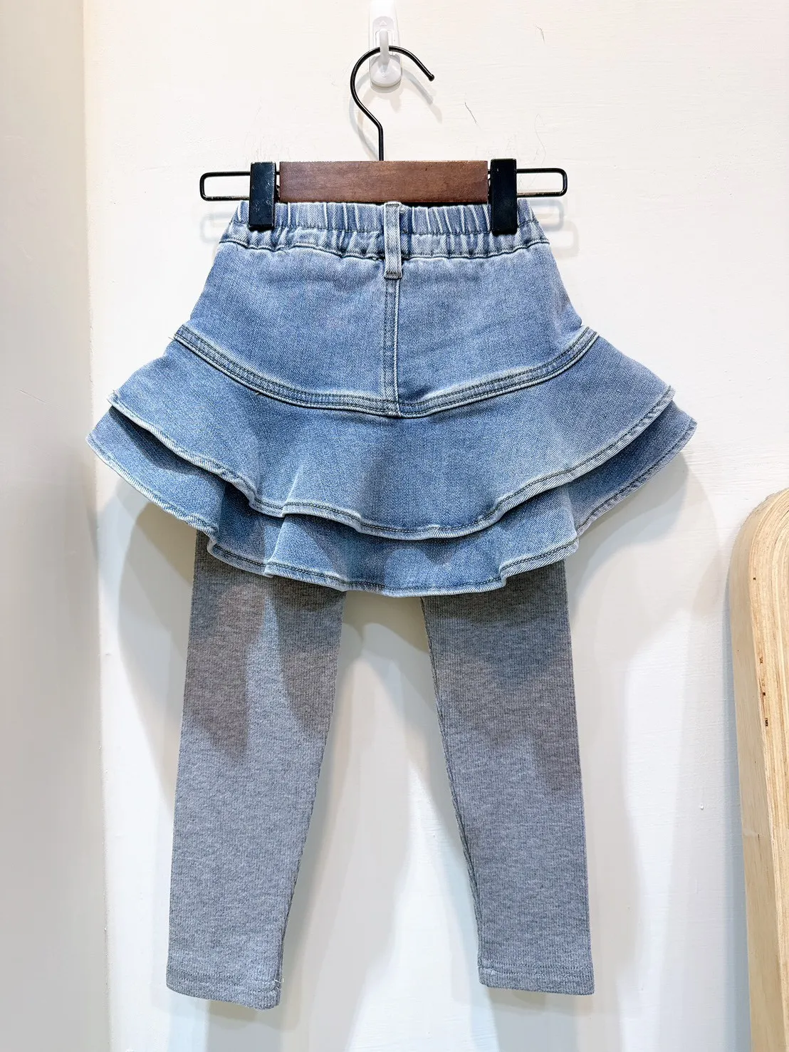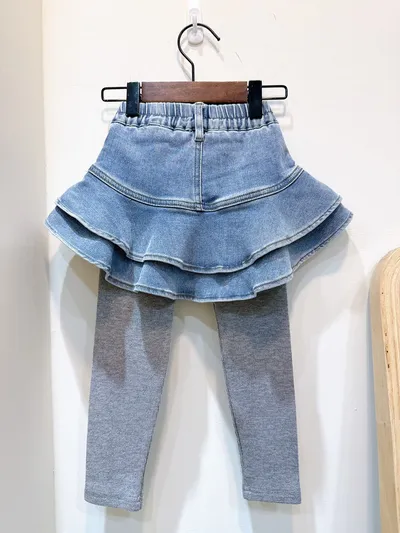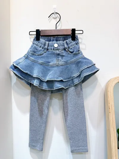 香水娜娜~荷葉擺⽜仔裙裙褲(90-140cm現貨)