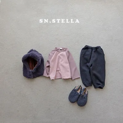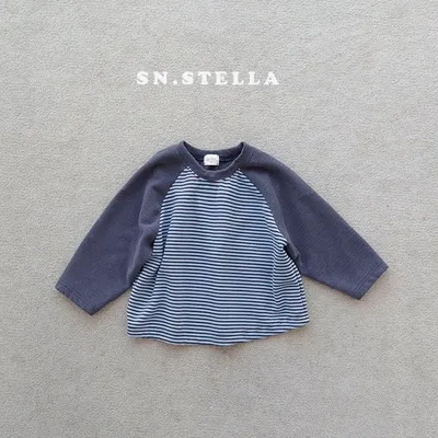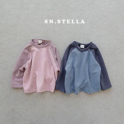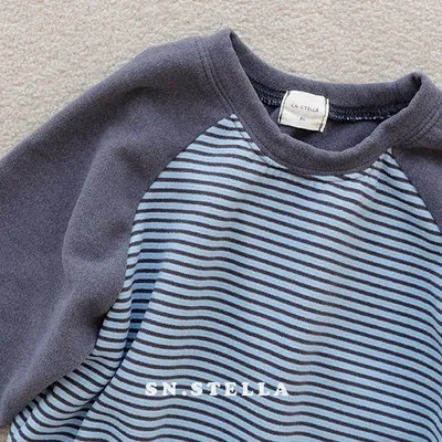 正韓拚袖橫條厚棉上衣(85-145cm預購)