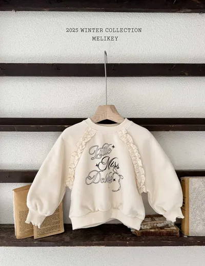 正韓斜邊木耳字母刷毛T(85-145cm預購)
