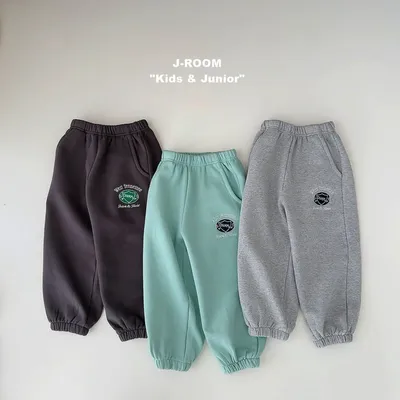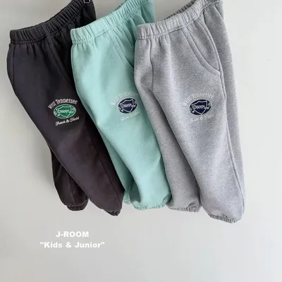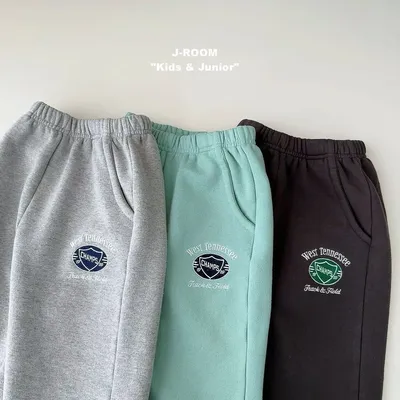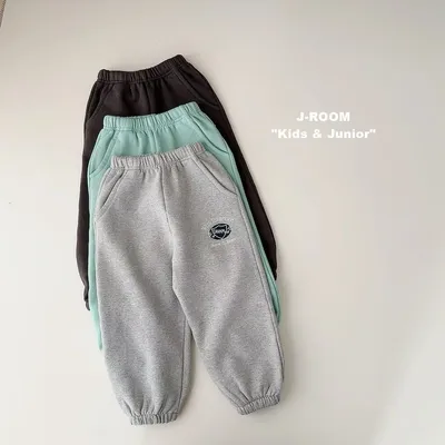 正韓盾牌logo刷毛縮口棉褲(90-150cm預購)