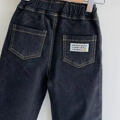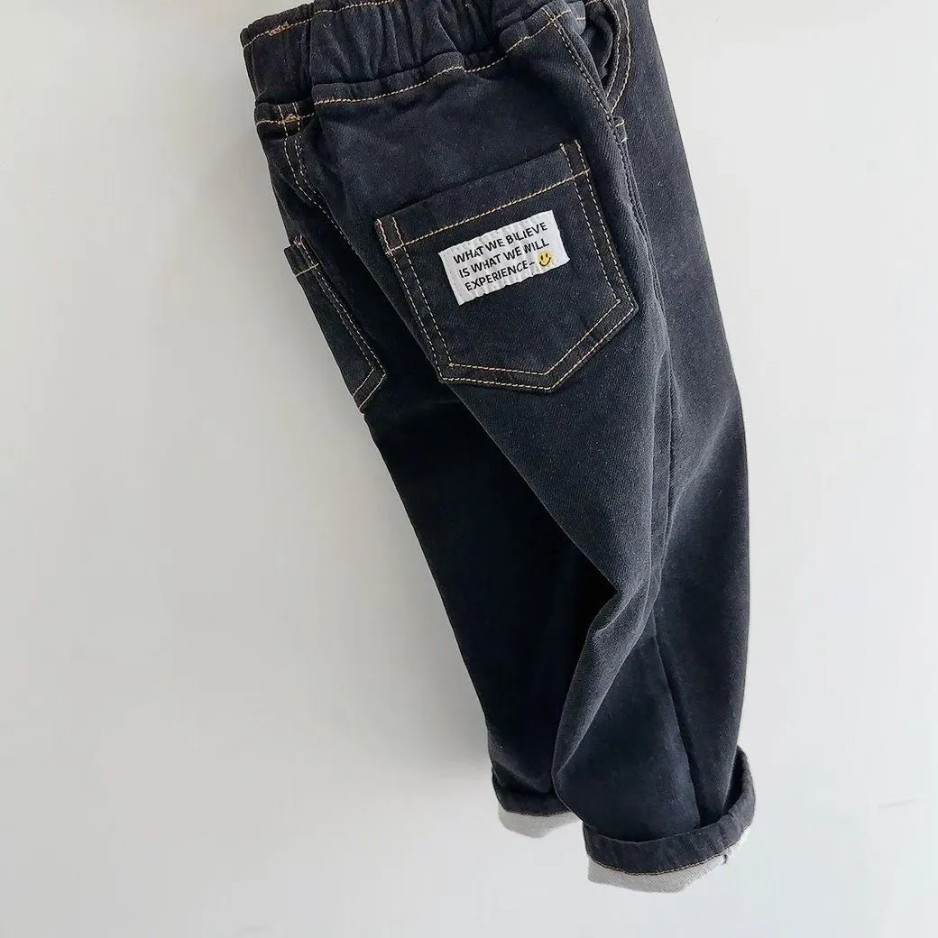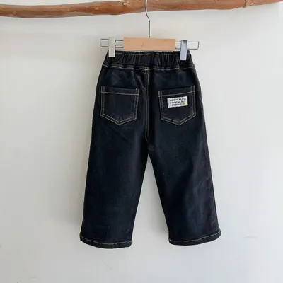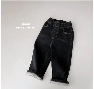 正韓後貼標刷毛牛仔褲(90-150cm預購)