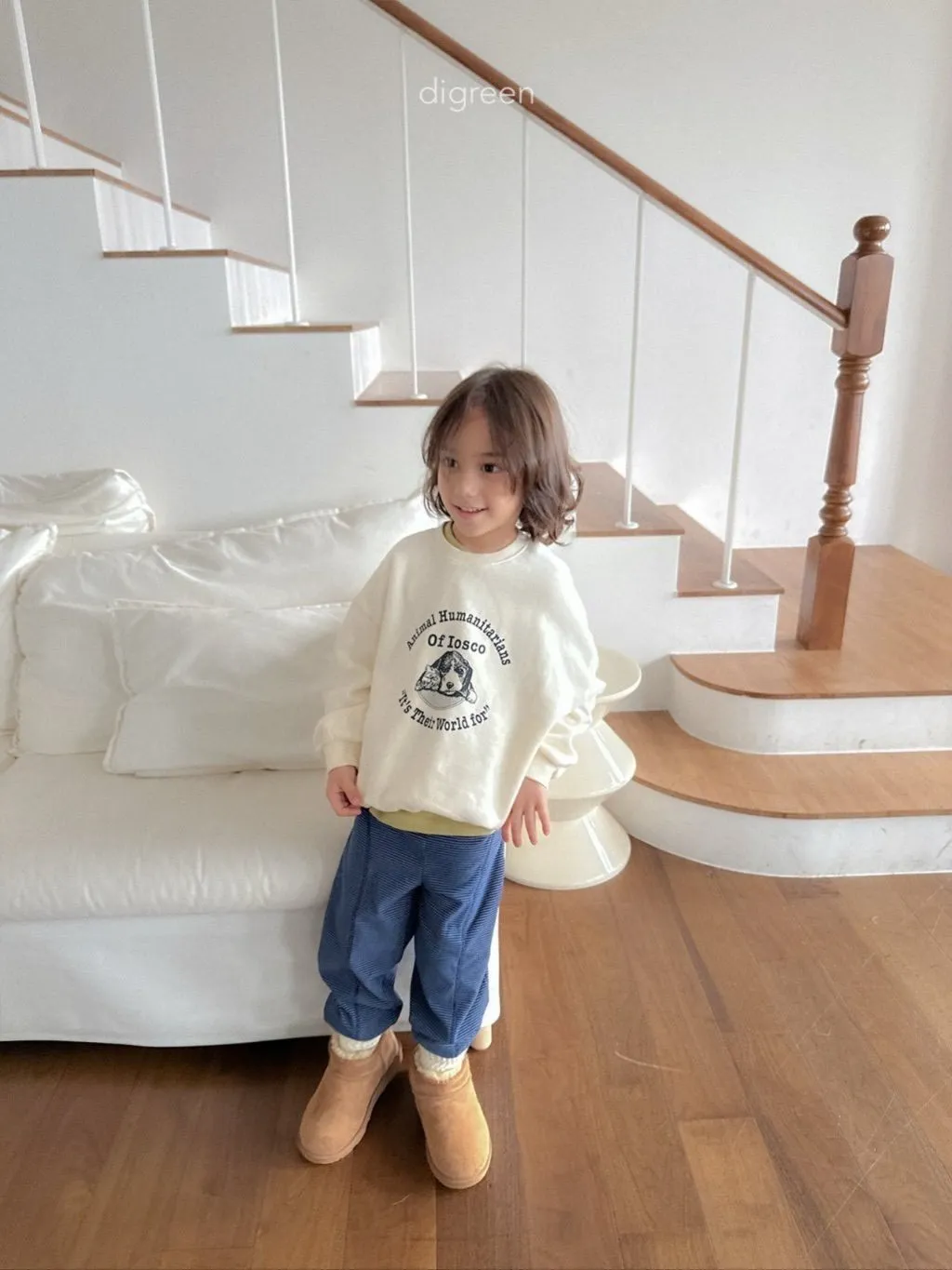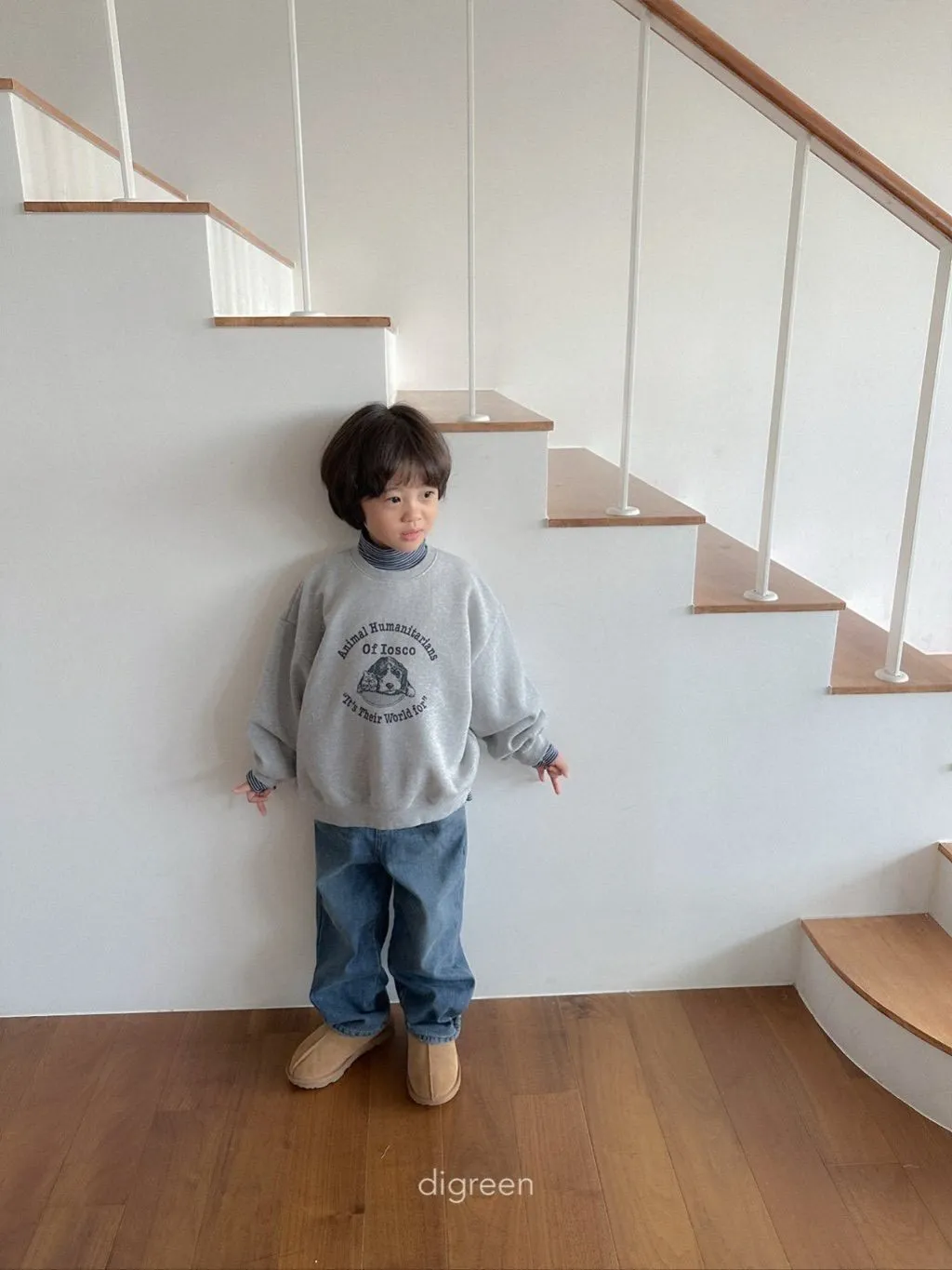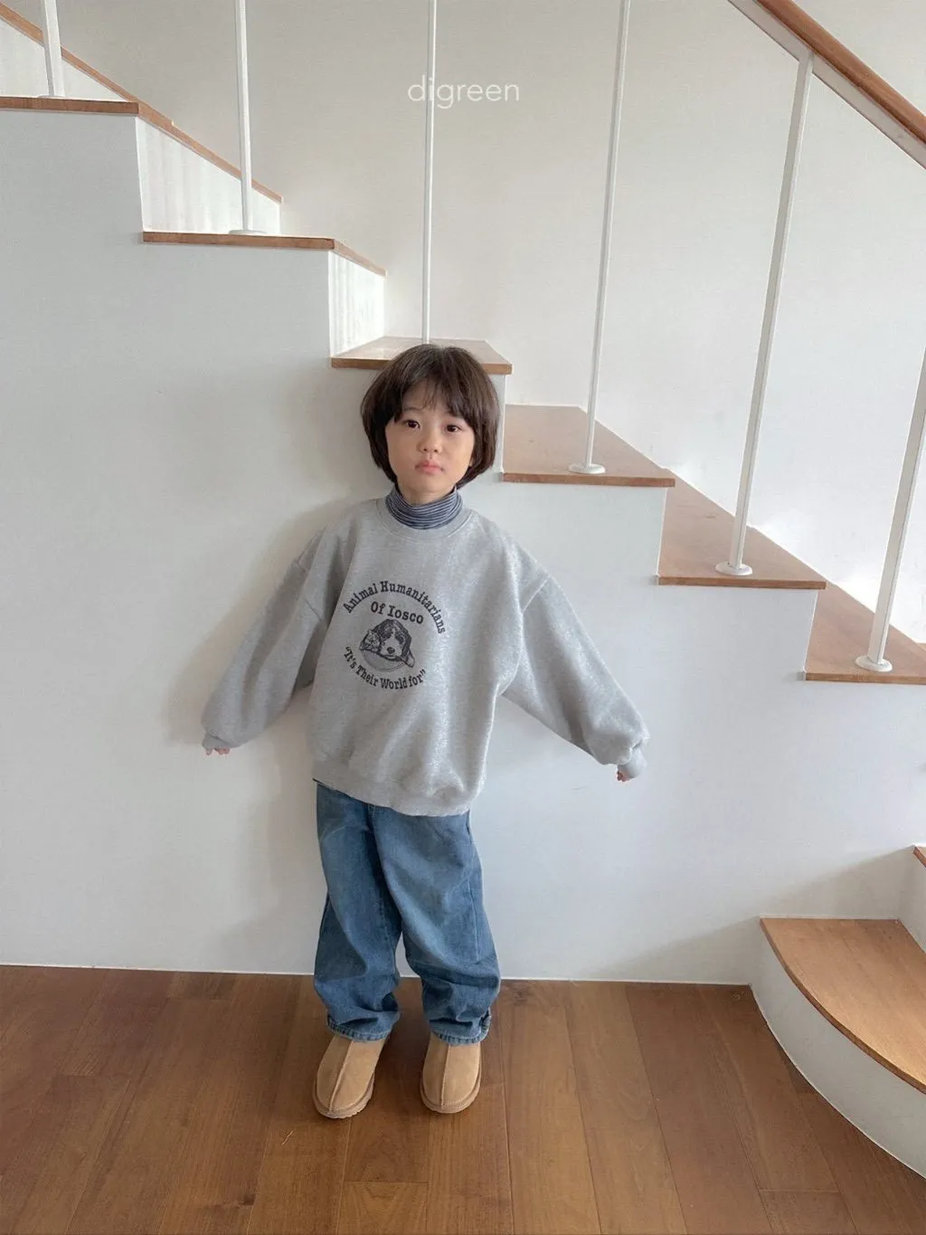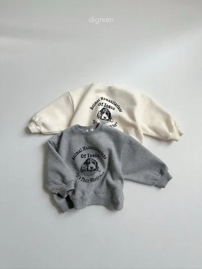 正韓大頭狗狗刷毛大學T(95-135cm現貨)