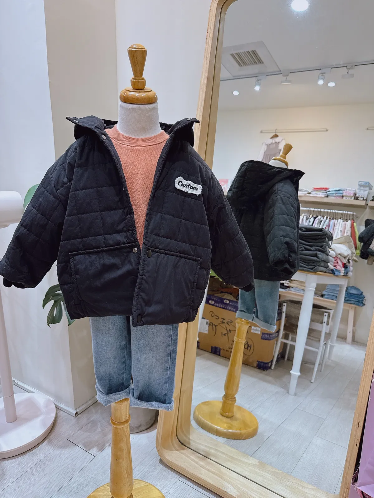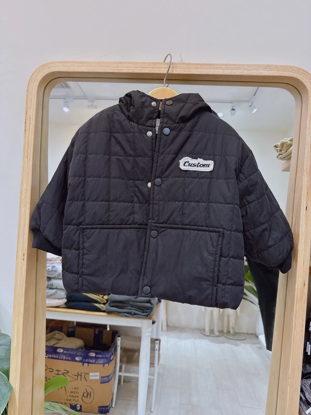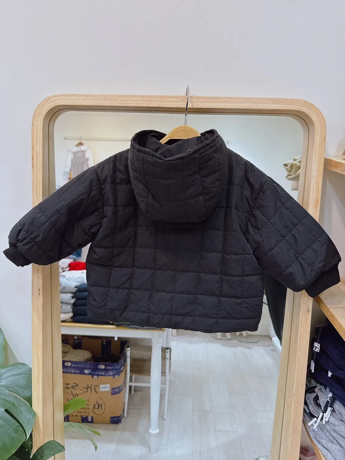 格紋鋪棉連帽外套(80-120cm,版型稍大,現貨)