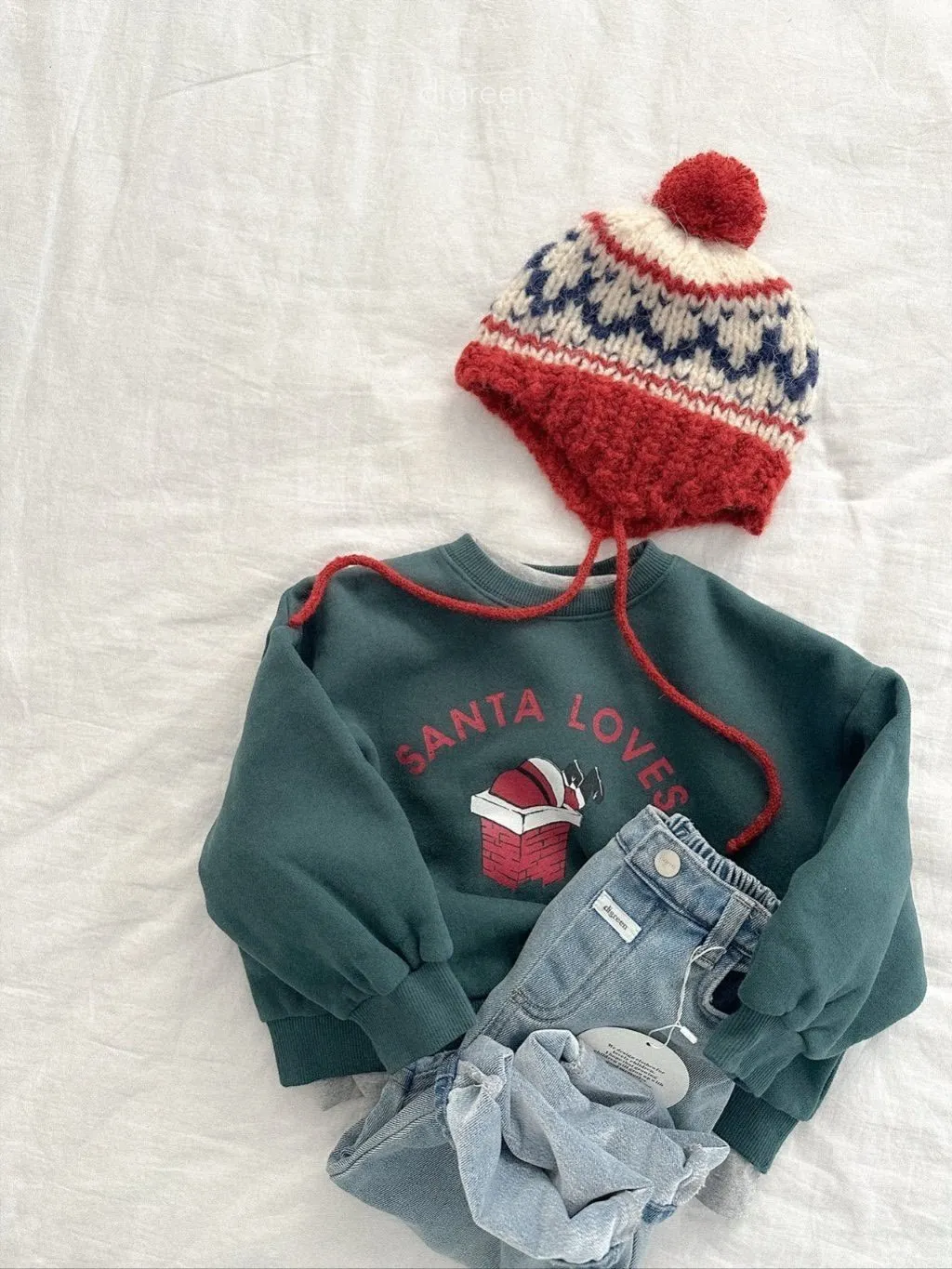 正韓聖誕帽小盒子刷毛T(95-135cm現貨)