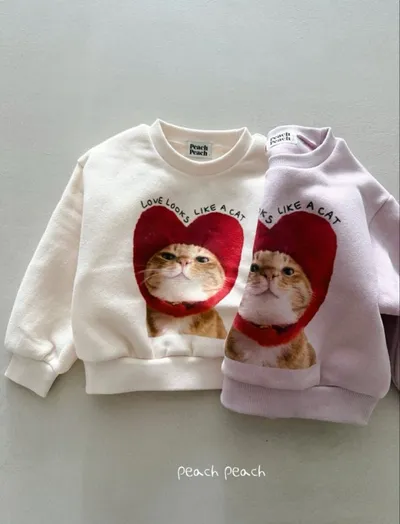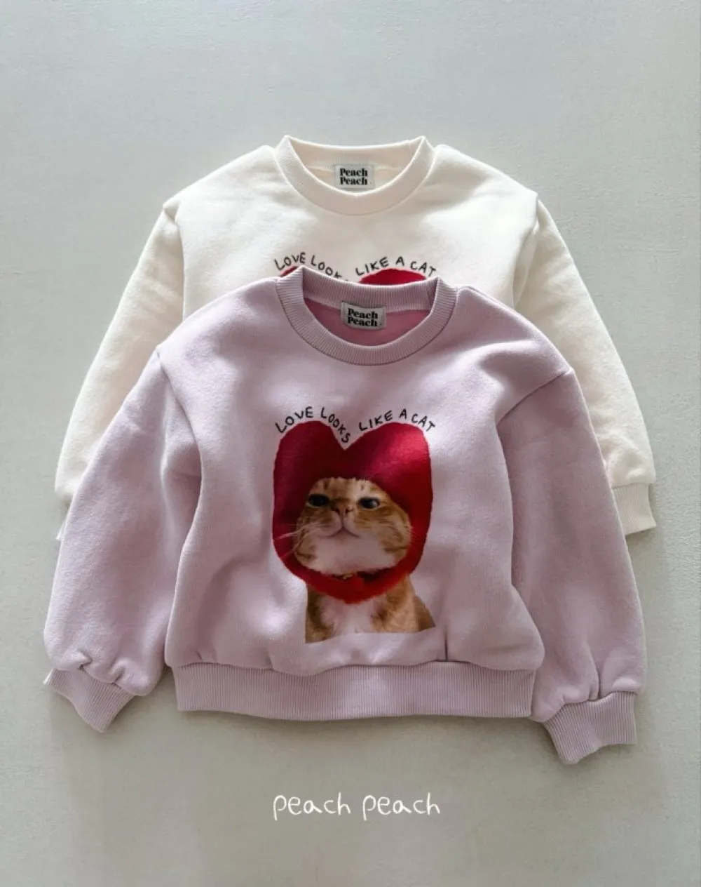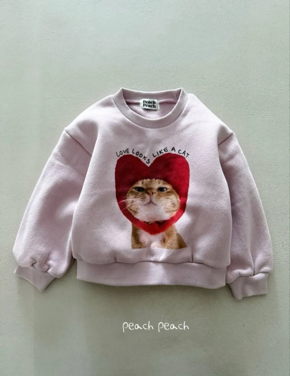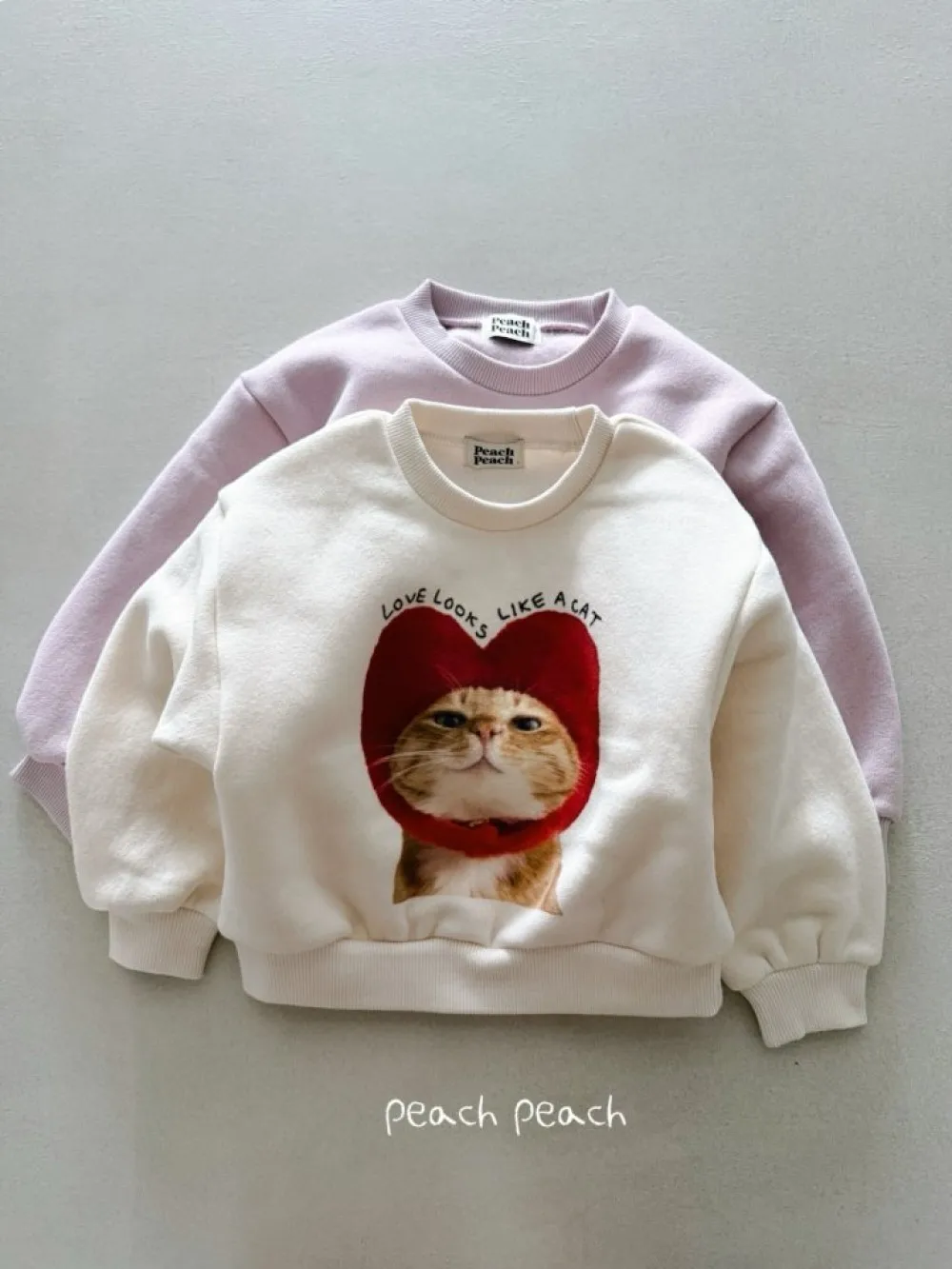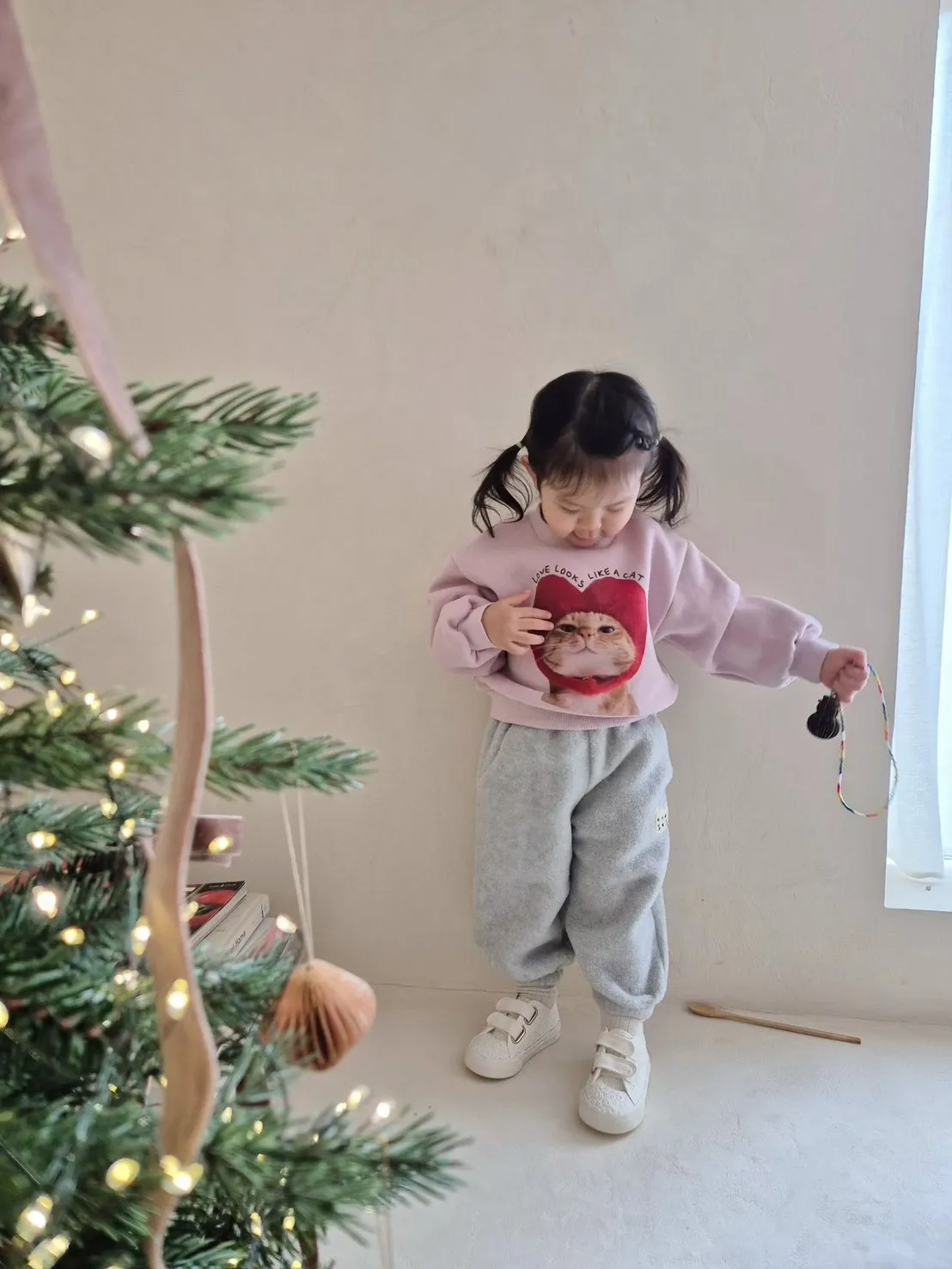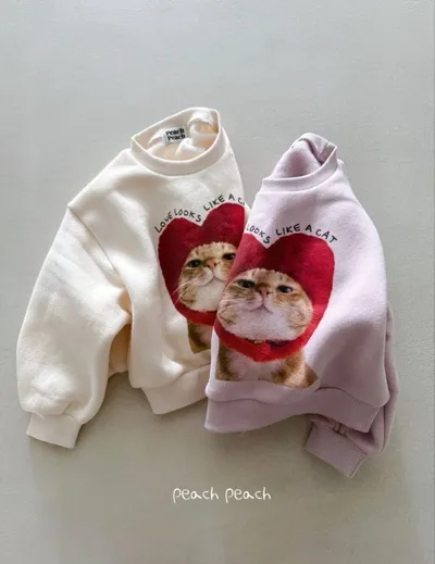 正韓愛心貓咪刷毛T(90-130cm現貨)