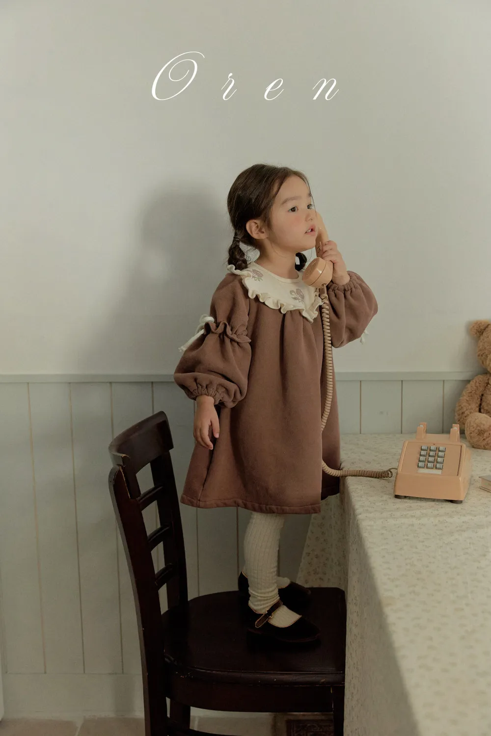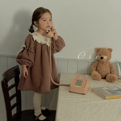 正韓民族風荷葉邊刷毛洋裝(90-120cm現貨)