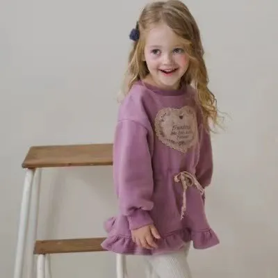 正韓圖騰愛心綁帶刷毛洋裝(90cm現貨)