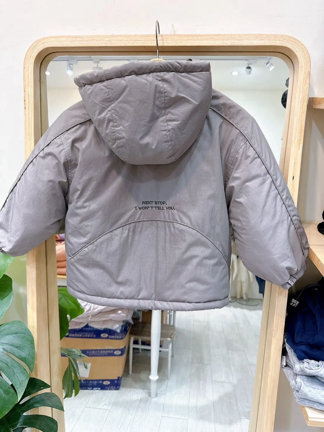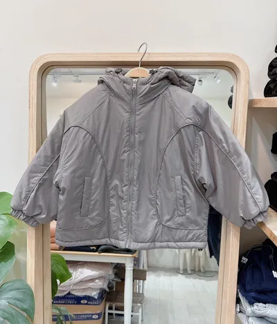 連帽斜圓弧鋪棉外套(110-150cm現貨)