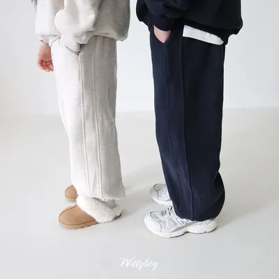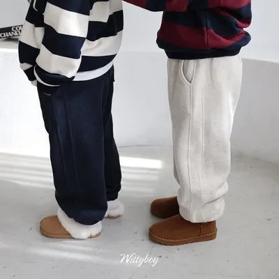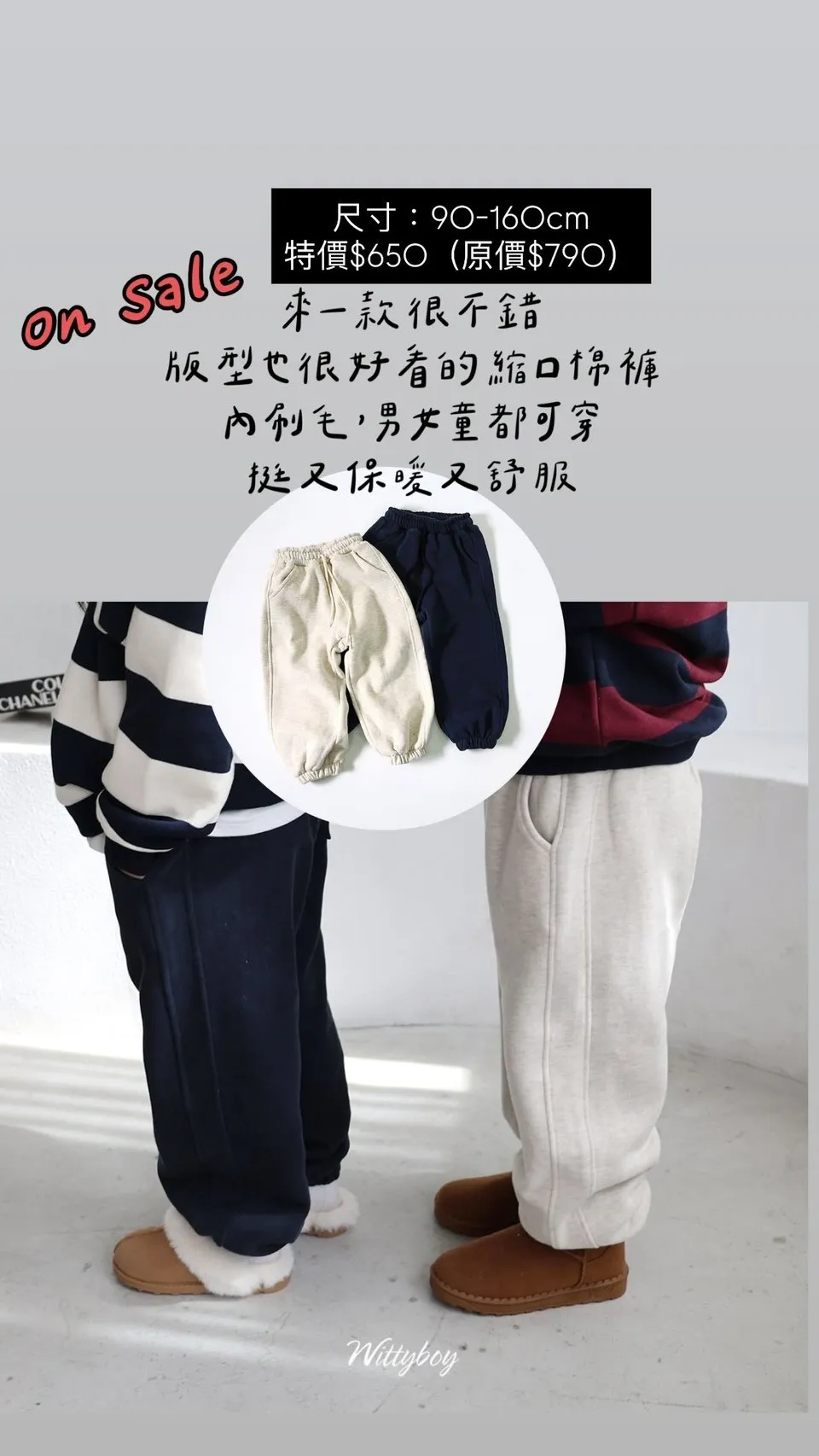 正韓側車線刷毛縮口棉褲(90-160cm現貨)