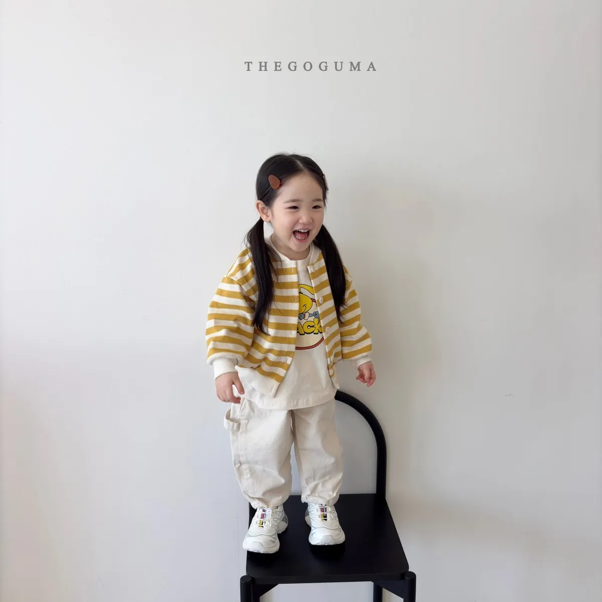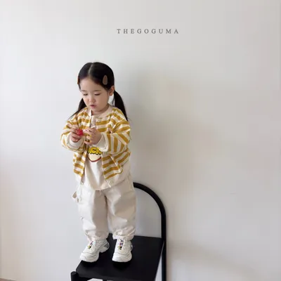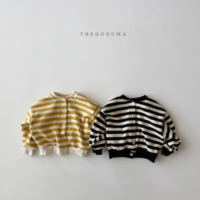 正韓橫條排扣薄外套(85-155cm預購)