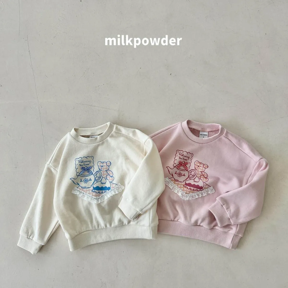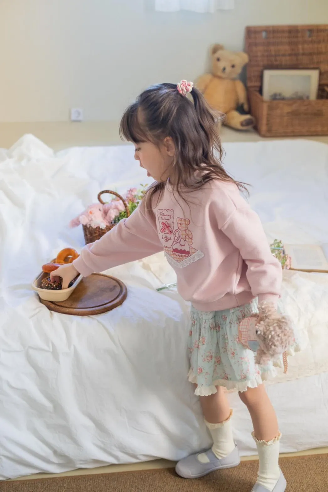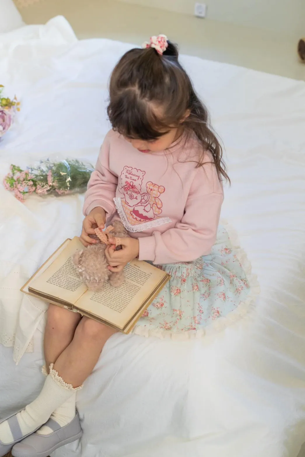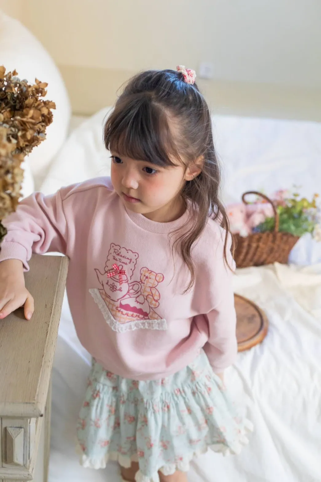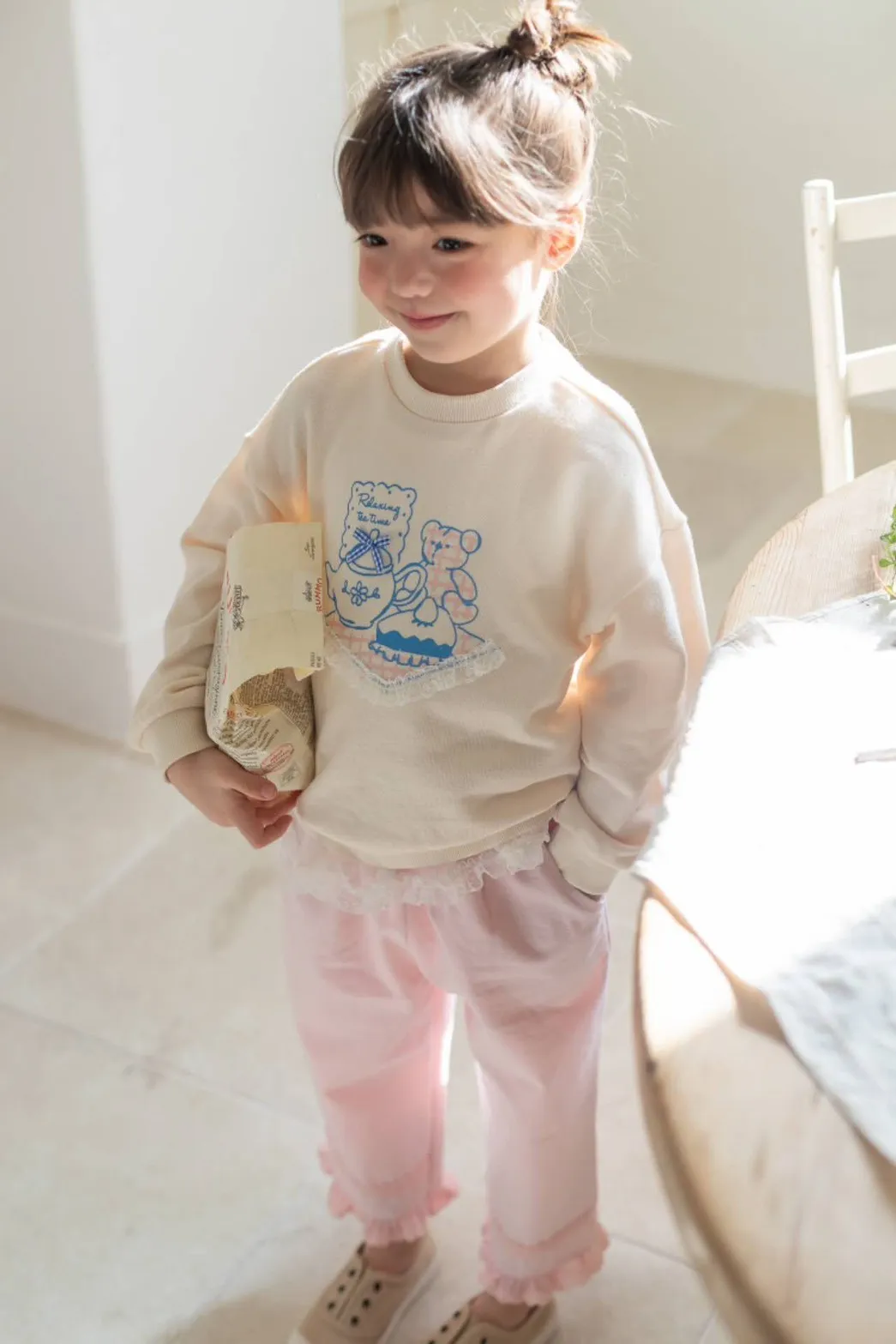 正韓下午茶小熊蕾絲大學T(95-145cm預購)