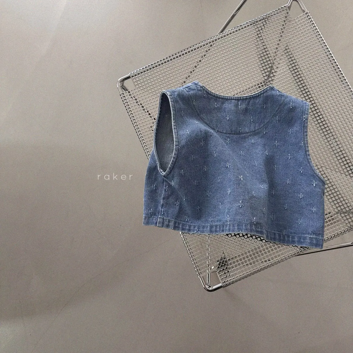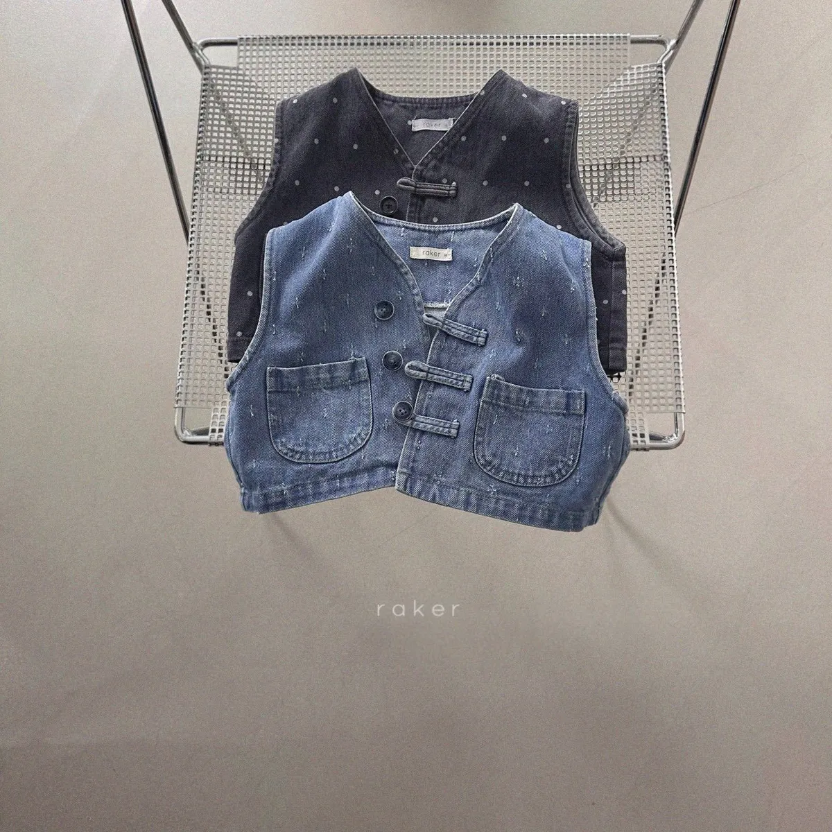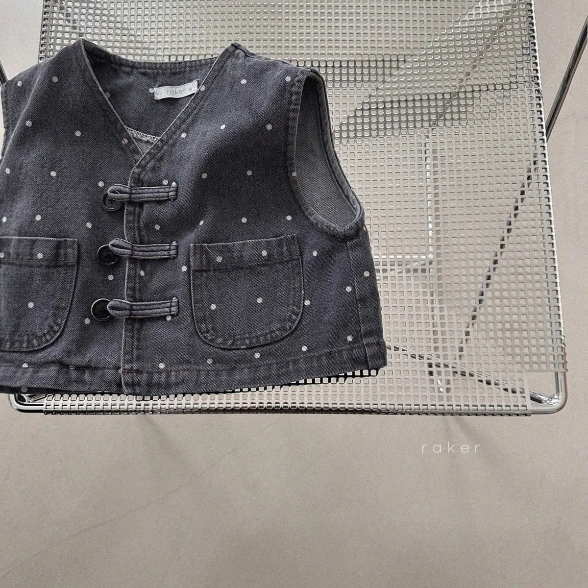 正韓斑點排釦牛仔背心(85-130cm預購)