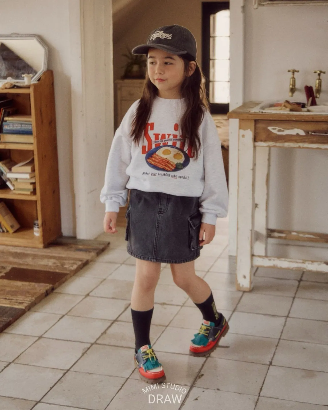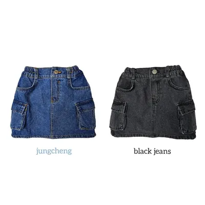 正韓雙口袋牛仔短裙(90-135cm)預購