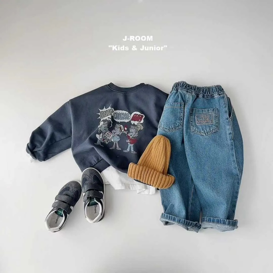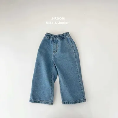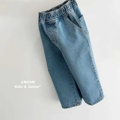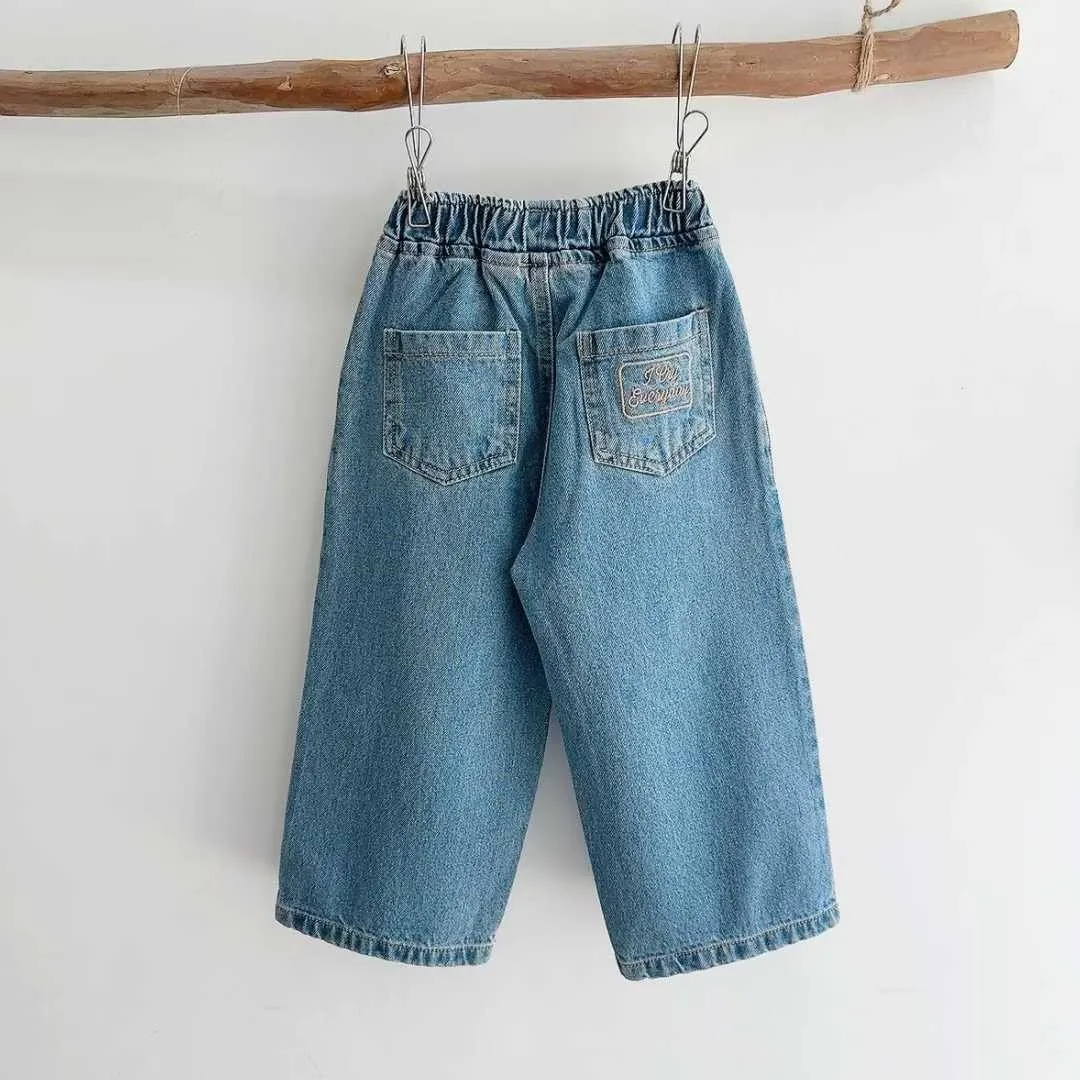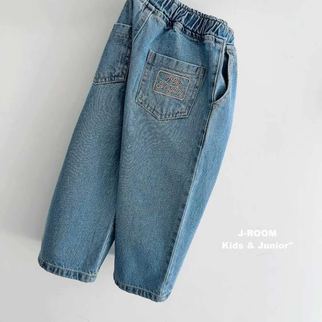 正韓電繡口袋直筒牛仔褲(90-150cm預購)