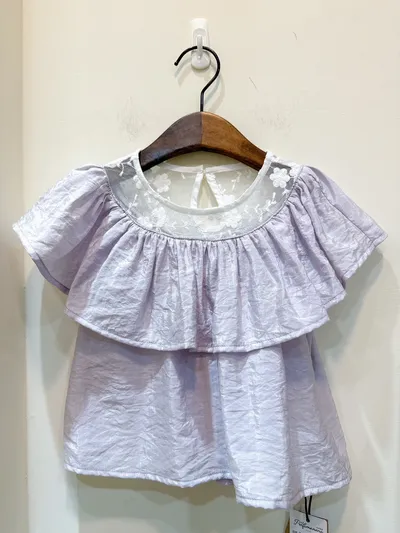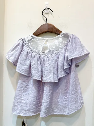 香水娜娜~花朵蕾絲透膚領上衣(90-140cm現貨)