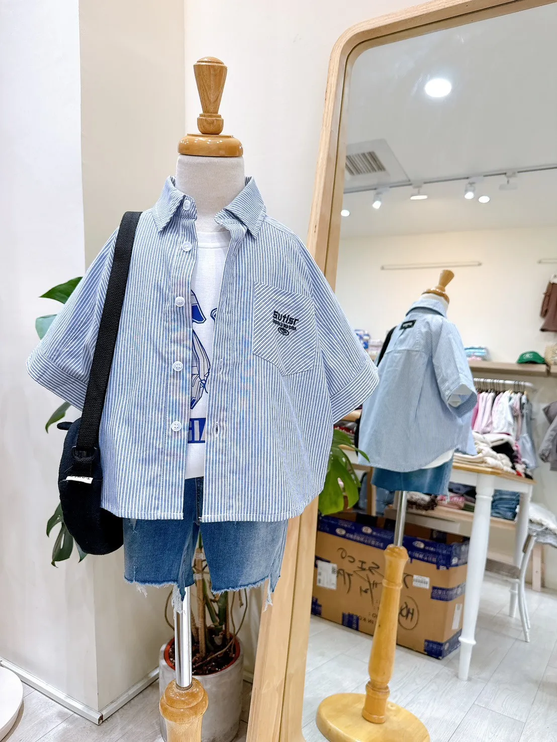 香水娜娜~條紋英⽂衫衣(90-160cm現貨)