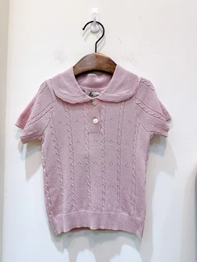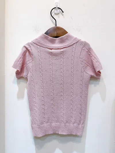 香水娜娜~娃娃領麥穗⽑織上衣(90-140cm現貨)