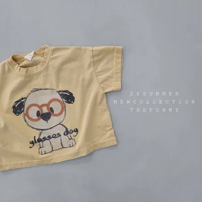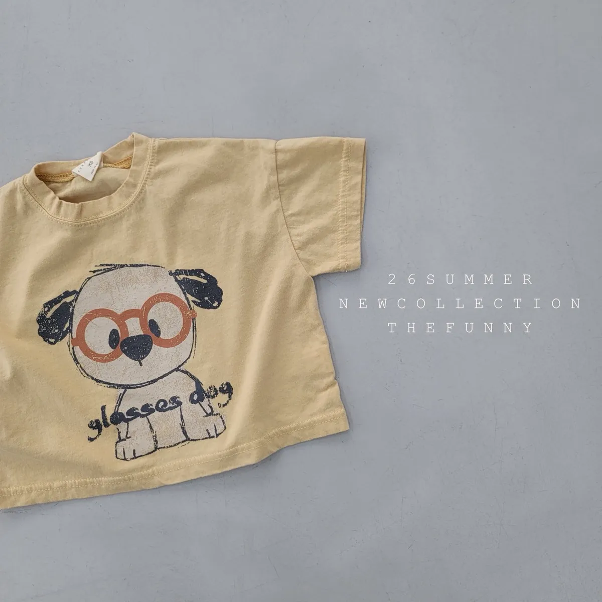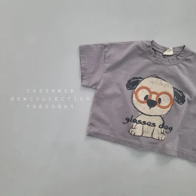 正韓戴眼鏡狗狗短T(85-140cm預購)