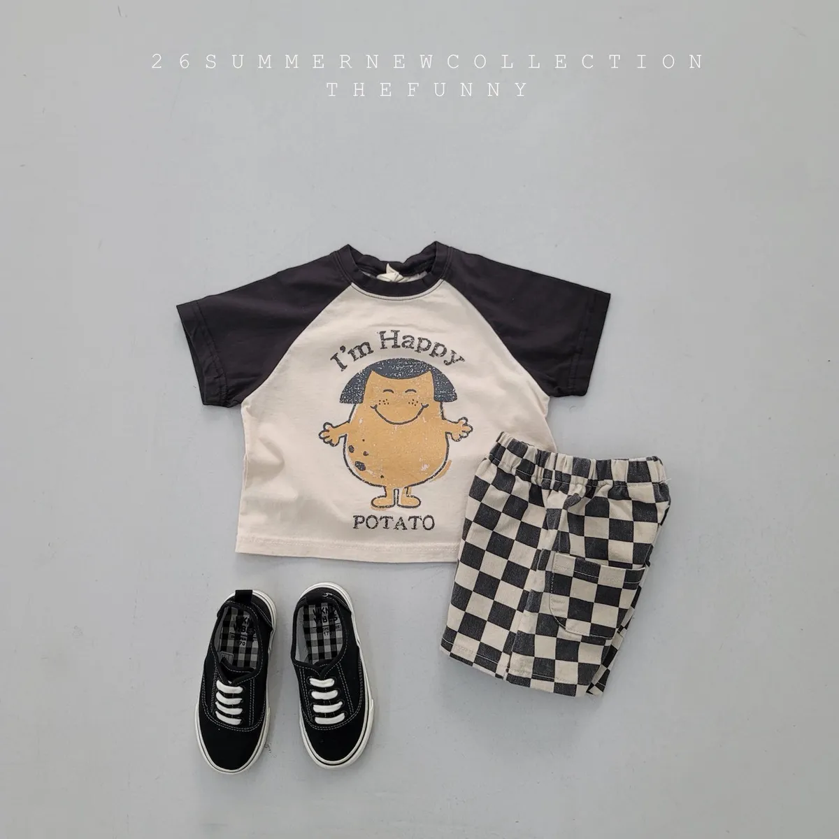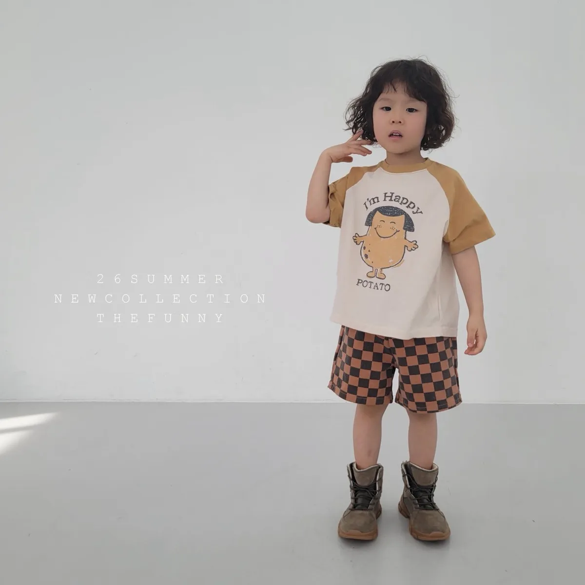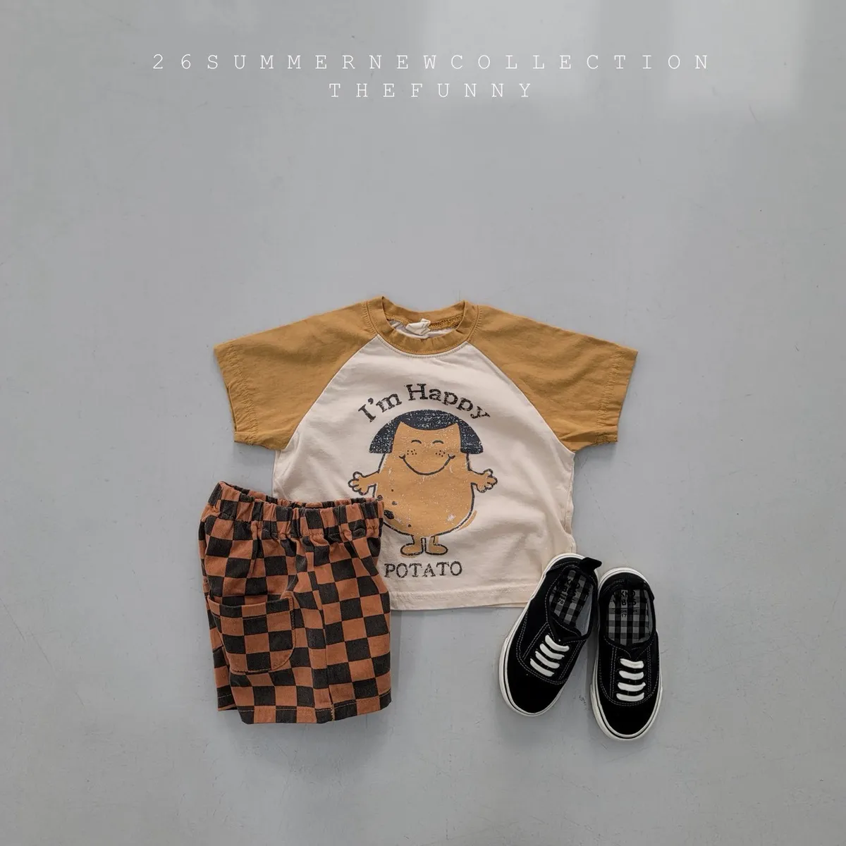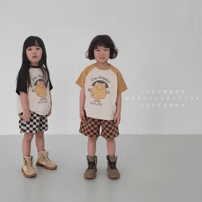 正韓happy馬鈴薯拚色短T(85-140cm預購)
