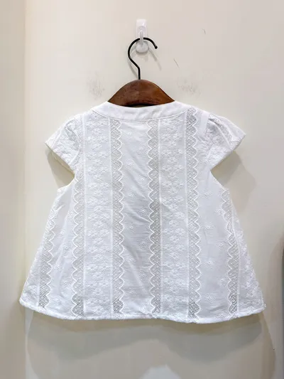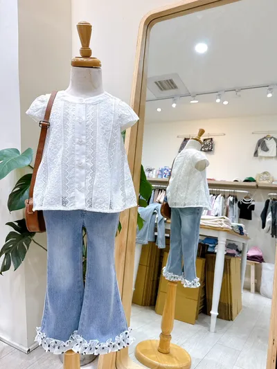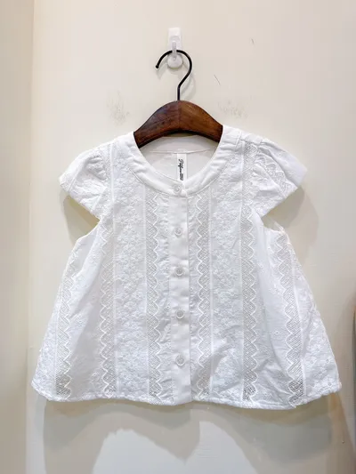 香水娜娜~繡花布⾶袖開襟上衣(90-140cm現貨)