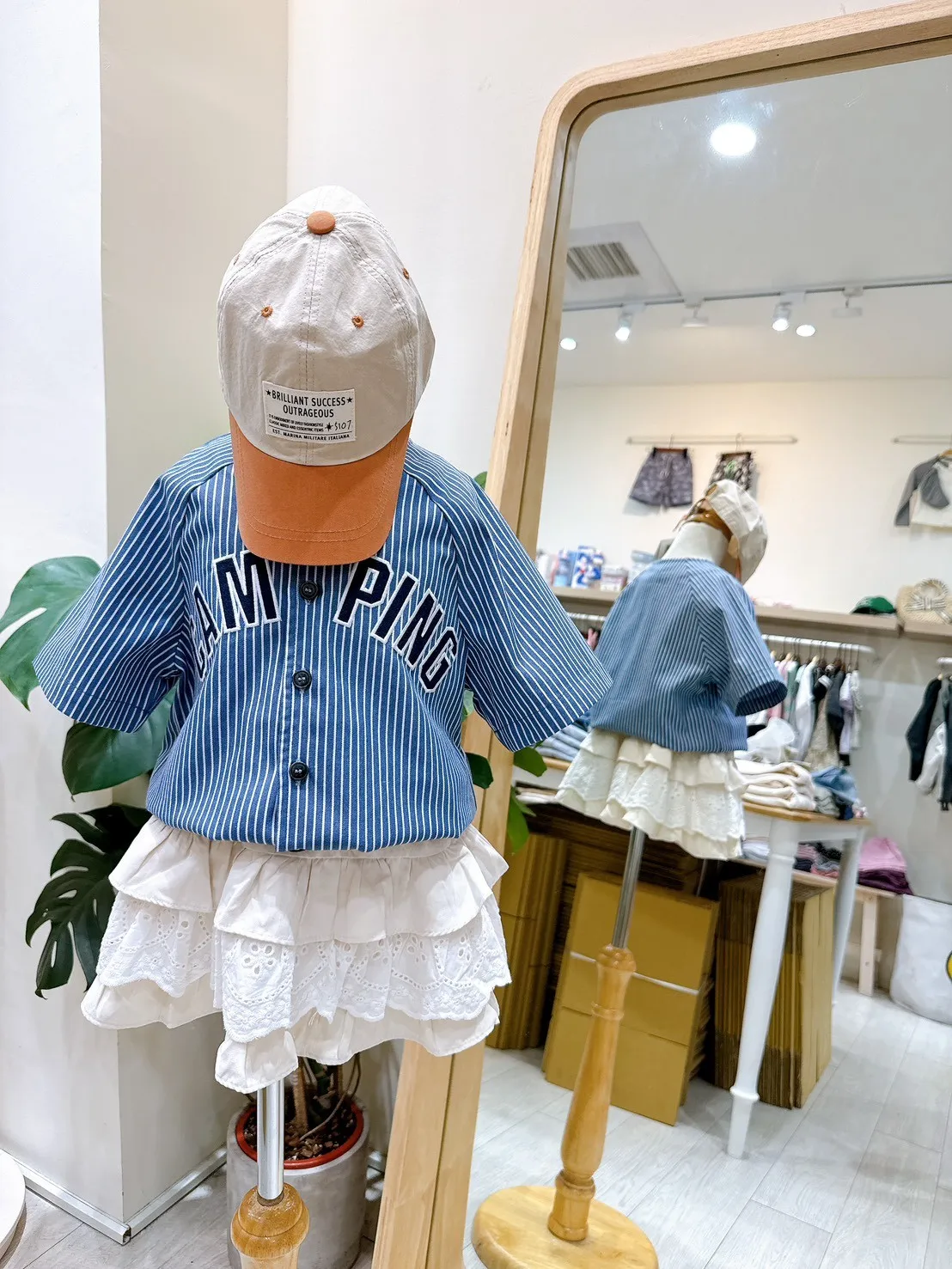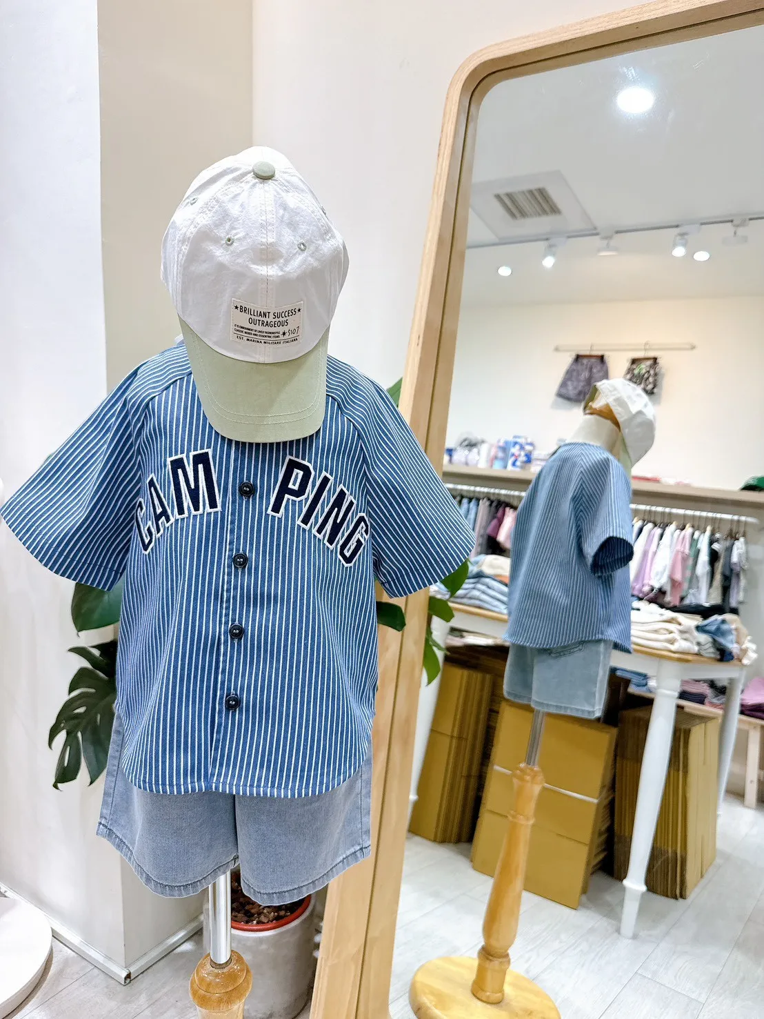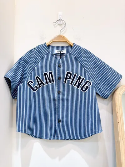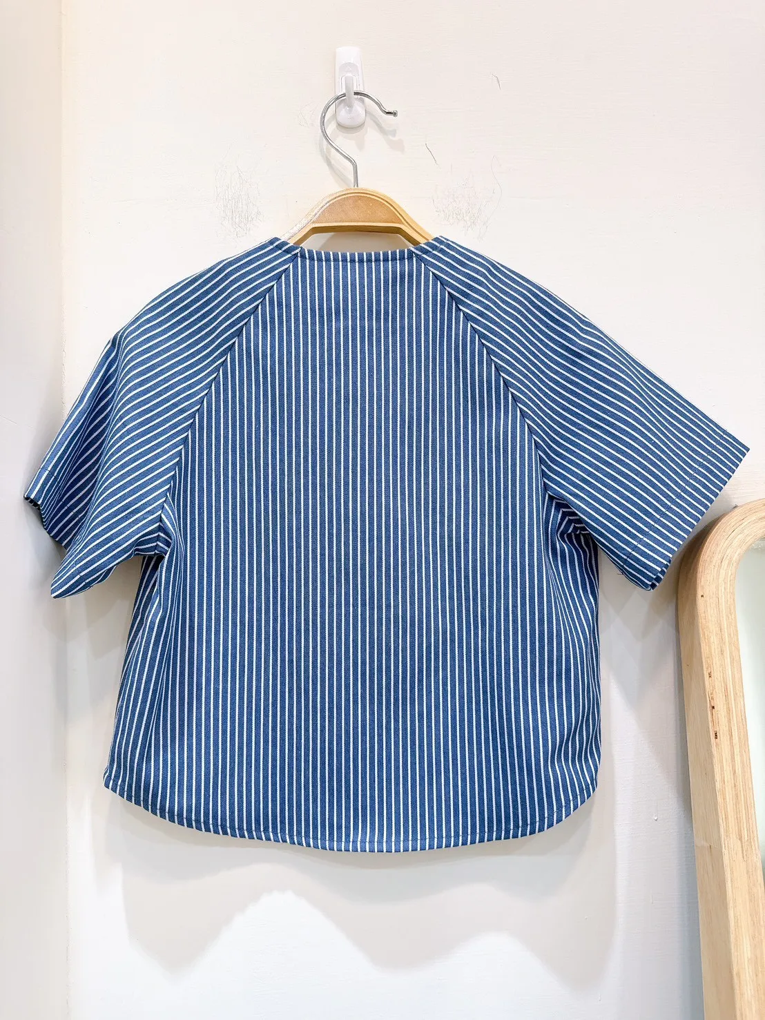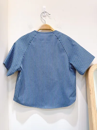 香水娜娜~豎條無領英⽂襯衣(90-140cm現貨)