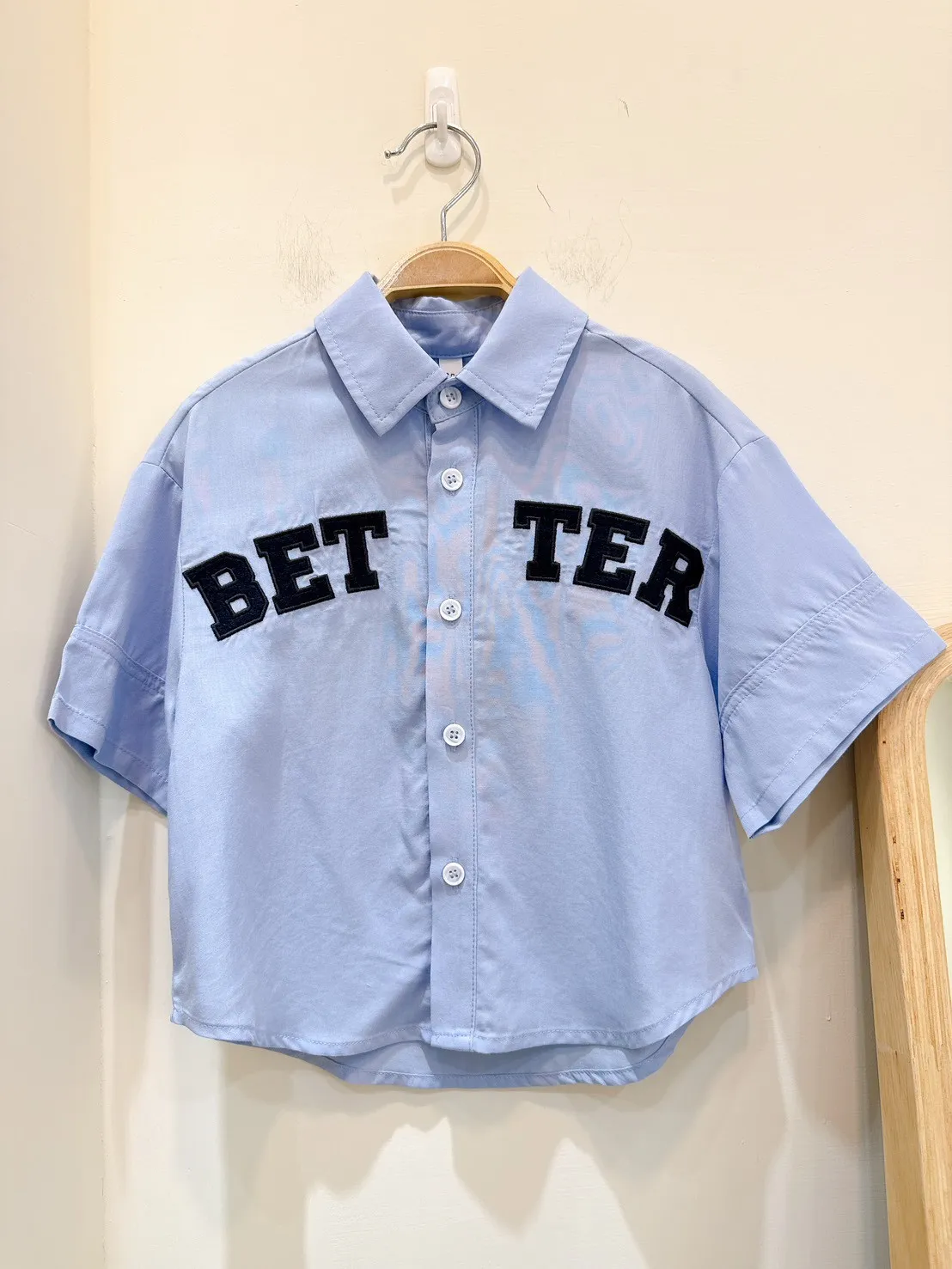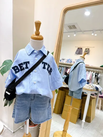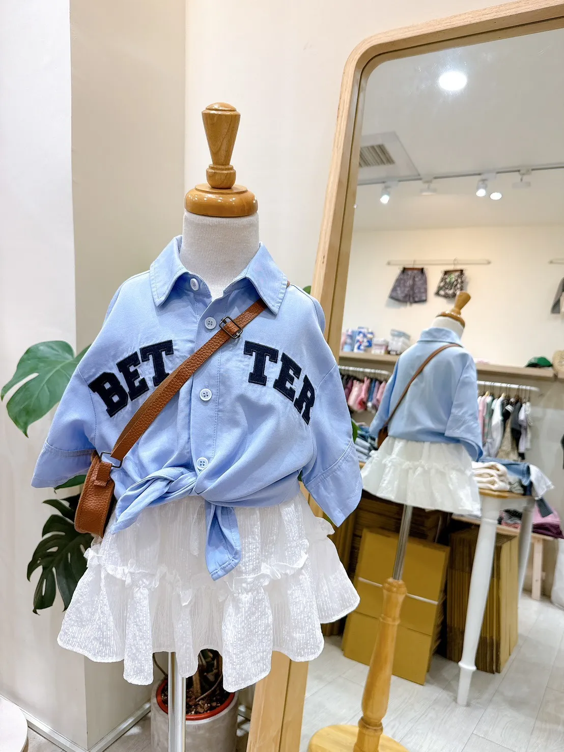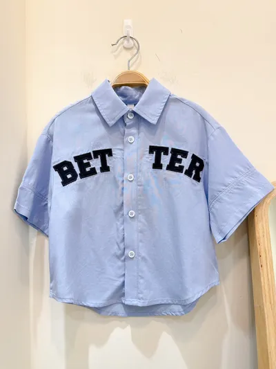 香水娜娜~繡英⽂接袖⼝襯衣(90-160cm現貨)