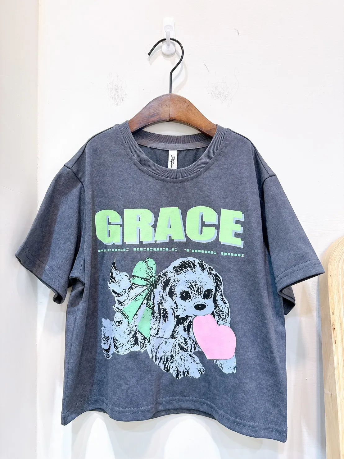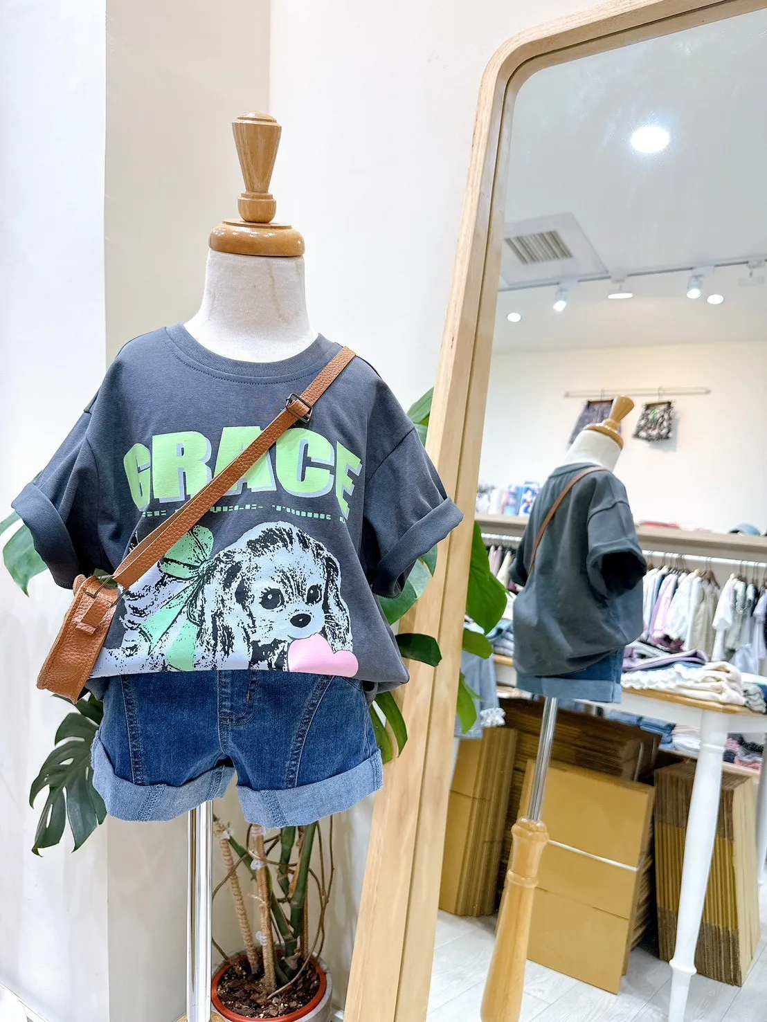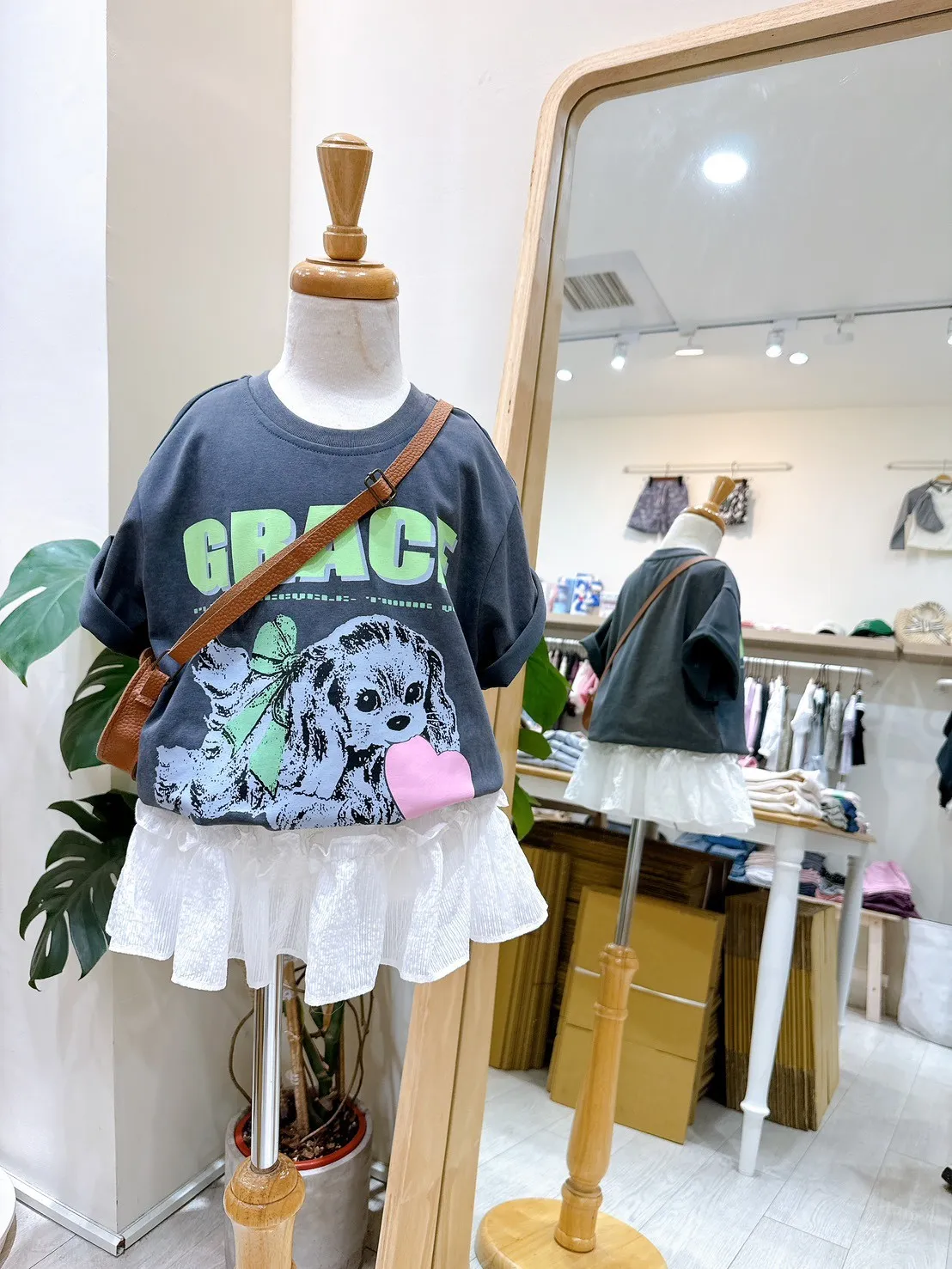 香水娜娜~蝴蝶結⼩狗蠟染⼤版T(90-140cm現貨)