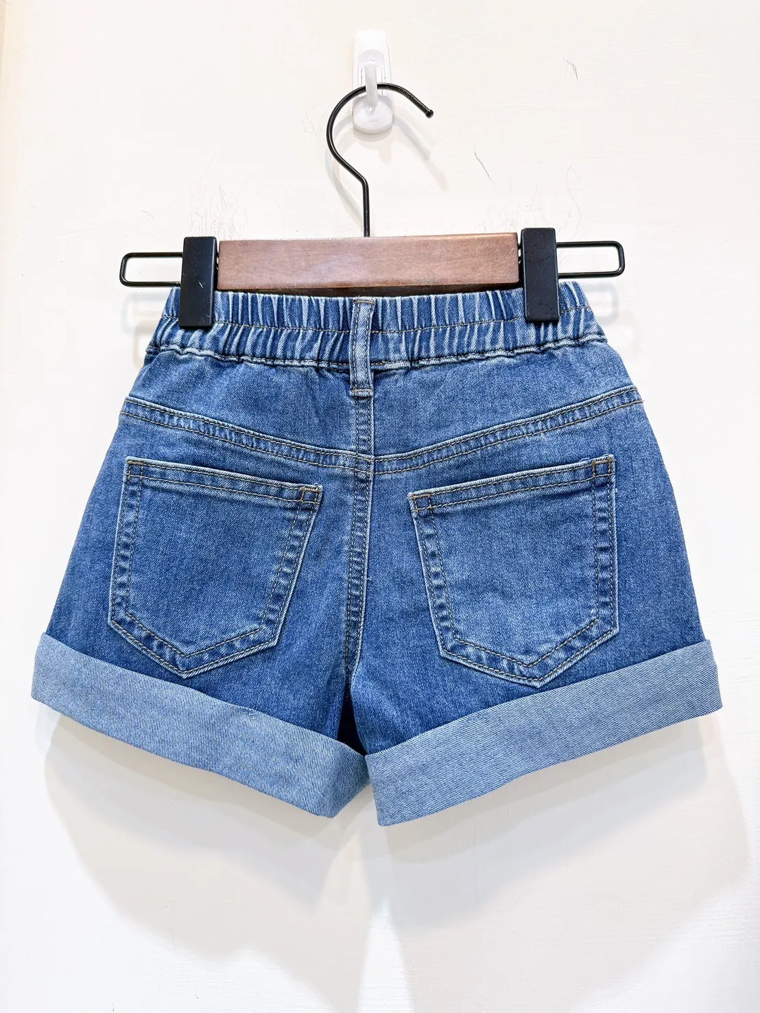香水娜娜~反折腳破骨⽜仔短褲(90-140cm現貨)