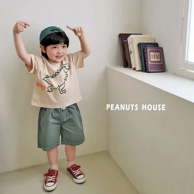 正韓微笑小標刷色布短褲(95-145cm預購)