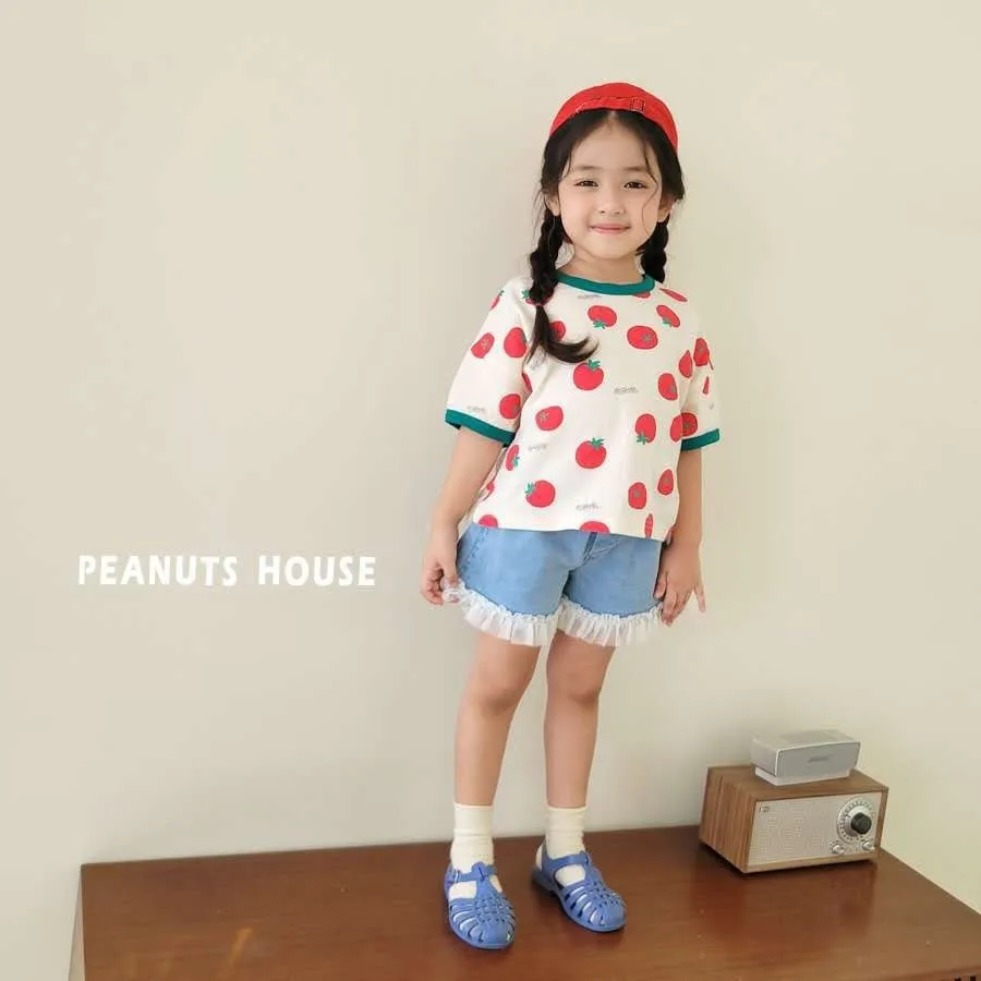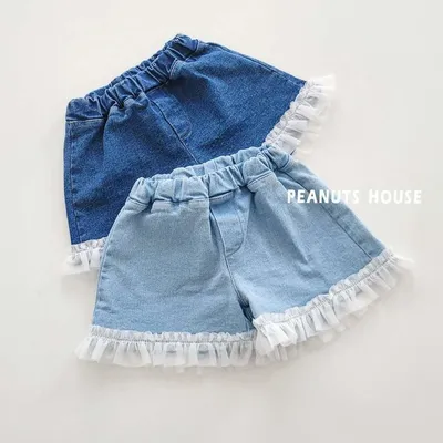 正韓下擺蕾絲牛仔短褲(95-145cm預購)