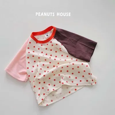 正韓拚袖滿版小星星短T(95-145cm預購)