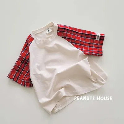 正韓拚袖格子短T(95-145cm預購)