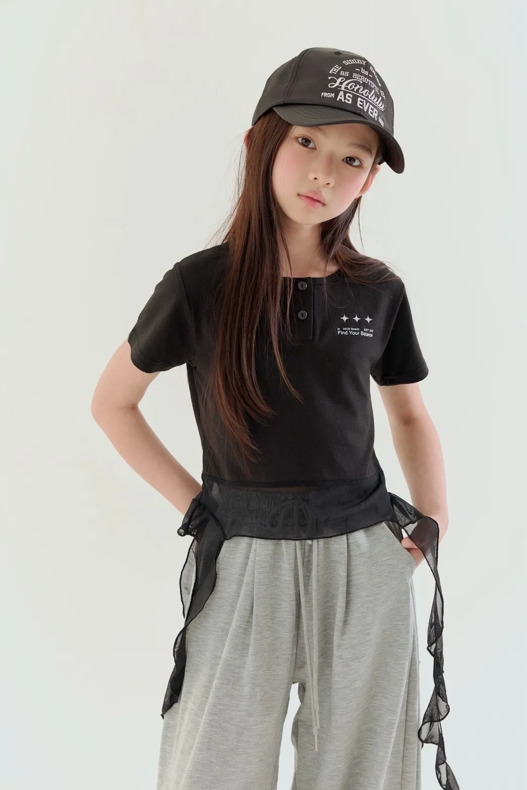 正韓飄逸側帶短版T(90-160cm預購)