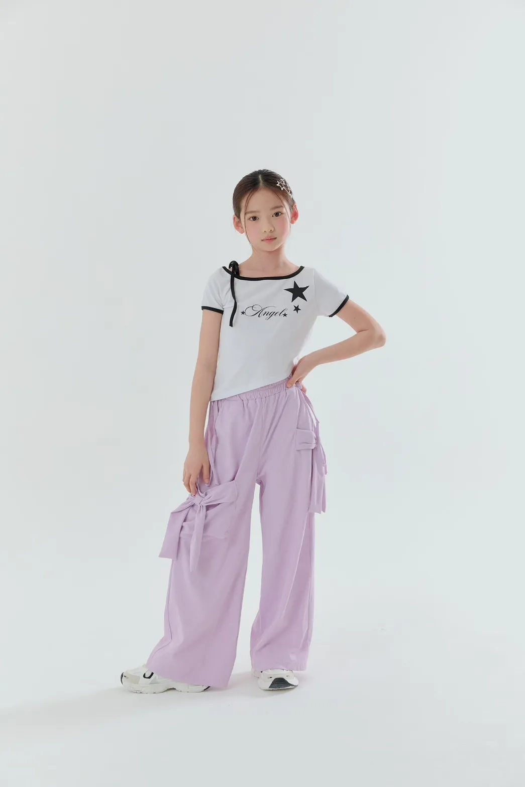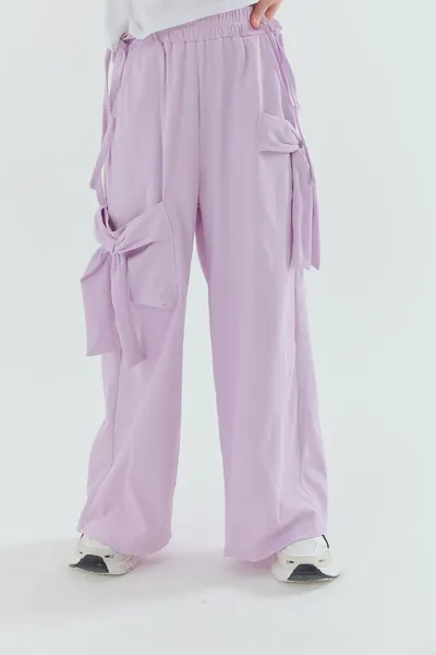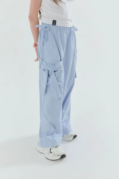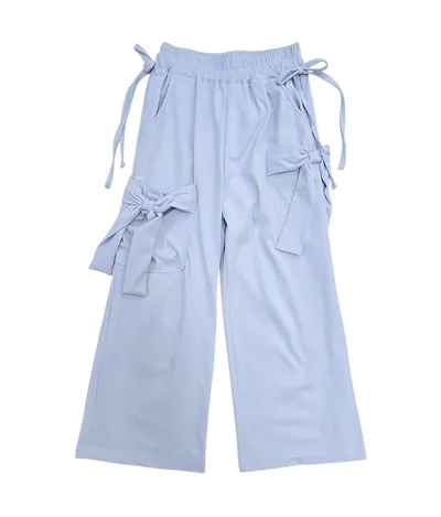 正韓側蝴蝶結綁繩寬褲(90-160cm預購)